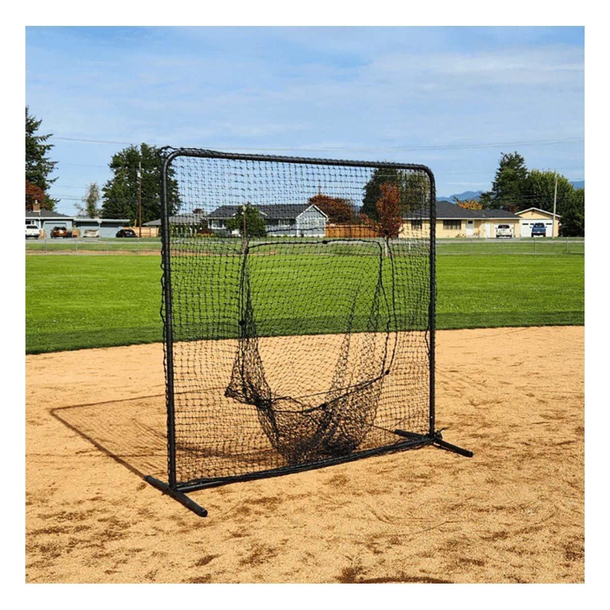 Elevate your baseball and softball batting training with the BATTING CAGES INC. BCI Soft Toss Protection Screen! This trainer net features double netting layers for superior protection and provides essential soft toss and batting practice, allowing you to hone your skills safely. This batting net features heavy duty 1.5 inch O.D. steel tubing for long-lasting reliability, HDPE netting, and features rope borders for extra durability. The arched frame legs provide better stability on uneven surfaces, and the rubber end caps for the legs help protect floors, fields, and turf. This outdoor pitch screen features a sock style design for easy installation over the frame. Our protective screens feature a frame which measures 7 W x 7 H in feet, and the netting features a #36 twine size. Our sport net comes with a 1 year limited net warranty.