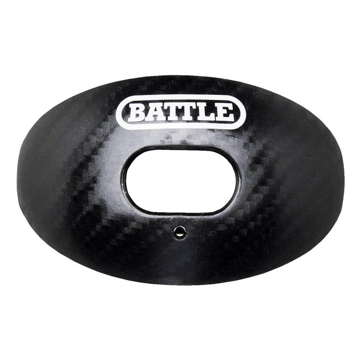 The Battle Oxygen Carbon Chrome Football Mouthguard has the largest breathing hole on the market and its patented design leverages SCUBA breathing innovations. An absorber shield and advanced composite material provide maximum breathability, while the braces-friendly design means no boiling is required. Plus, the one-size-fits-most design makes it easy to use, so you can get the most out of your workouts. This revolutionary mouthguard is designed to provide maximum oxygenation to help you perform at your peak. Get your Battle Oxygen Carbon Chrome Football Mouthguard today and experience the difference!