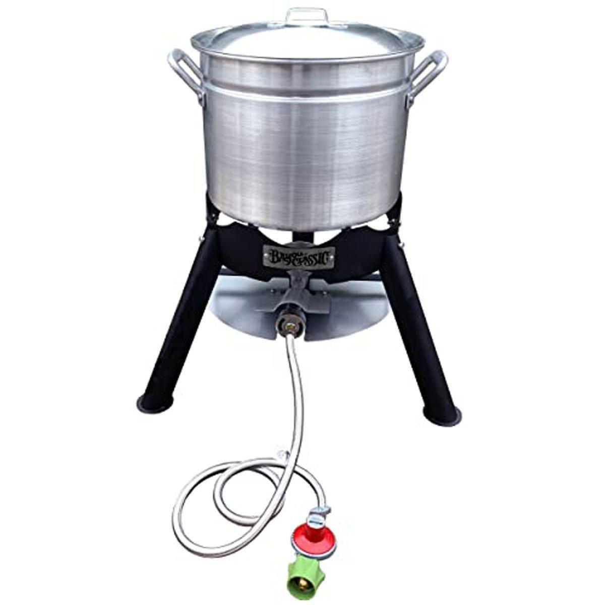 Bayou Classic KDS-424 24-qt Boil Steam and Fry Cooker Kit Features Heavy Riveted Handles Domed Vented Lid Perfect For Frying Steaming and Boiling