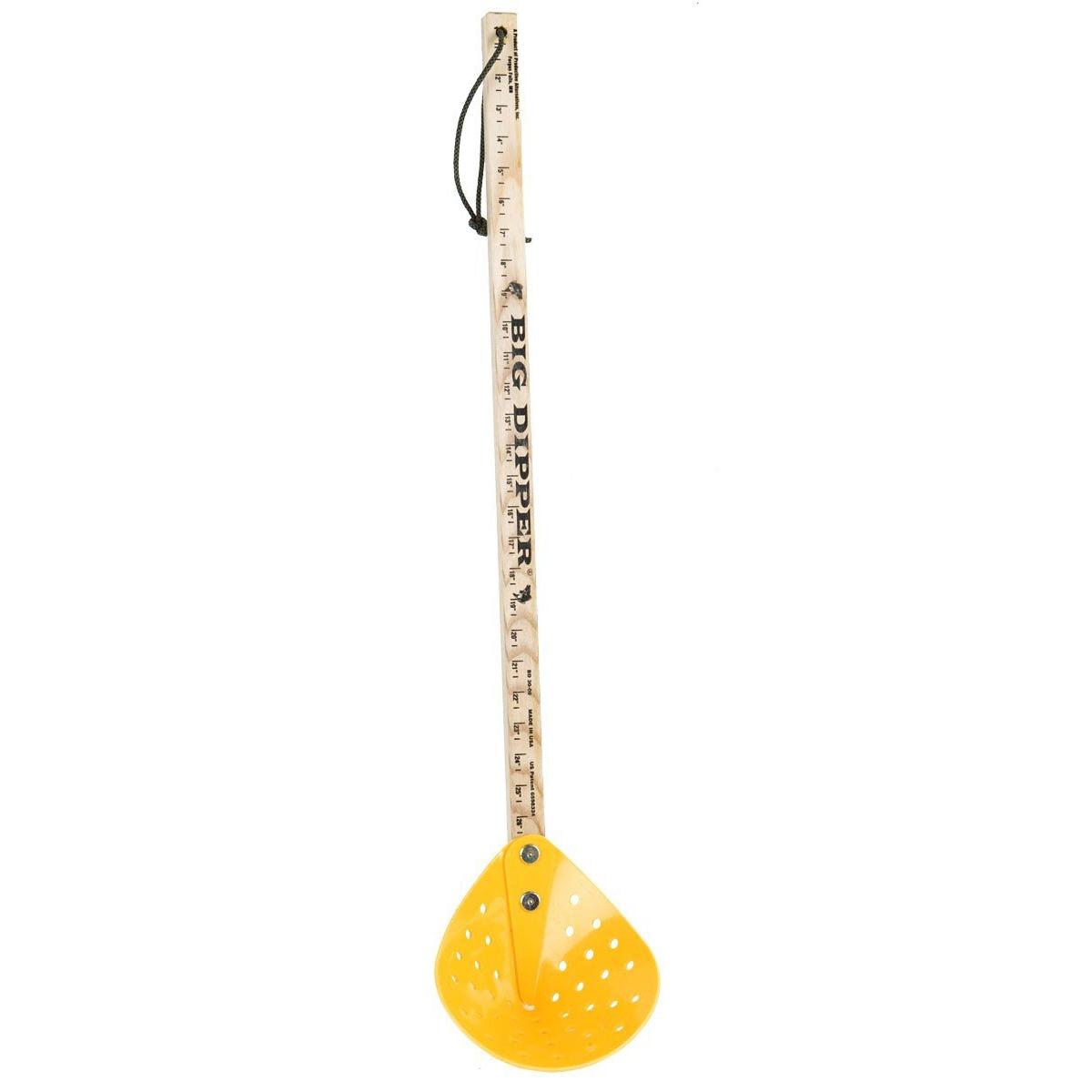 Tired of wimpy skimmers that break, bend or just don't hold up during the bitter winter season? Try out the Big Dipper ice skimmer. It has a super-tough hockey stick handle with a 26" ruler marked on it, ready to settle any arguments about size. The durable hard plastic skimmer holds up during arctic fishing action.