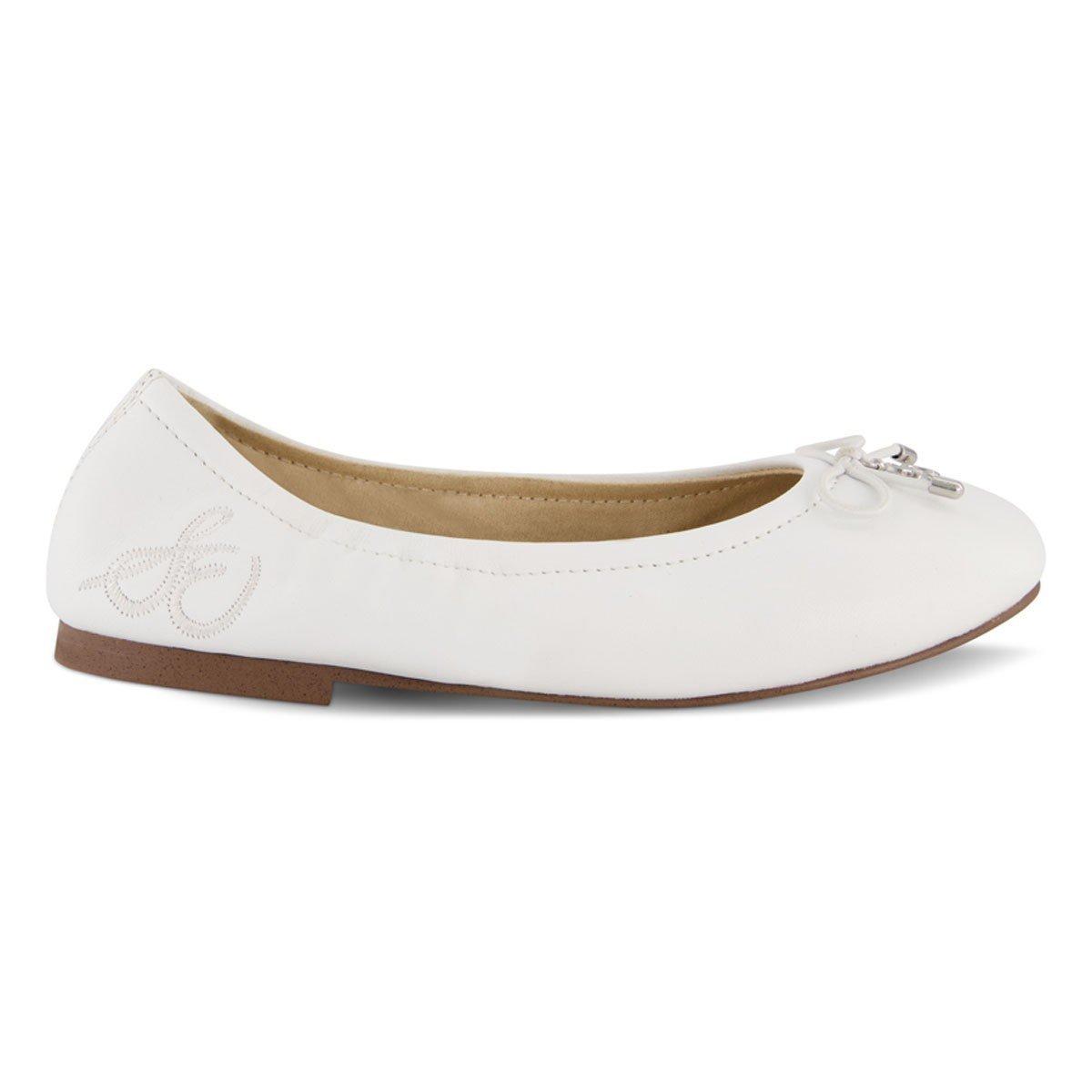 {"reviews":[],"offset":0,"limit":10,"total":0}"Full Description:\nThis girls slip on ballet flat features a bow with signature charm and embroidered detailing. Perfect for casual and dressy occasions.\n\nFeatures:\n\u003cul>\n\u003cli>Slip-on style for easy on and off\u003c/li>\n\u003cli>Designed for little and big kids\u003c/li>\n\u003cli>Adorned with a signature bow and charm detail\u003c/li>\n\u003cli>Classic ballet flat design for timeless style\u003c/li>\n\u003cli>Versatile for both casual and dressy occasions\u003c/li>\n\u003cli>Available in multiple colors: Black, White, and Tan\u003c/li>\n\u003c/ul>\n\n"