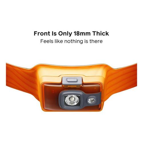 A headlamp so comfortable, you'll forget you're wearing it. This headlamp delivers bright illumination, excellent fit, versatile modes, and USB rechargeability so you can leave the disposable batteries behind. Power source is located on the front, leaving a smooth back band, ideal for anyone looking to kick back or read with their light. It's time to try a headlamp you'll keep on your head and not around your neck.
