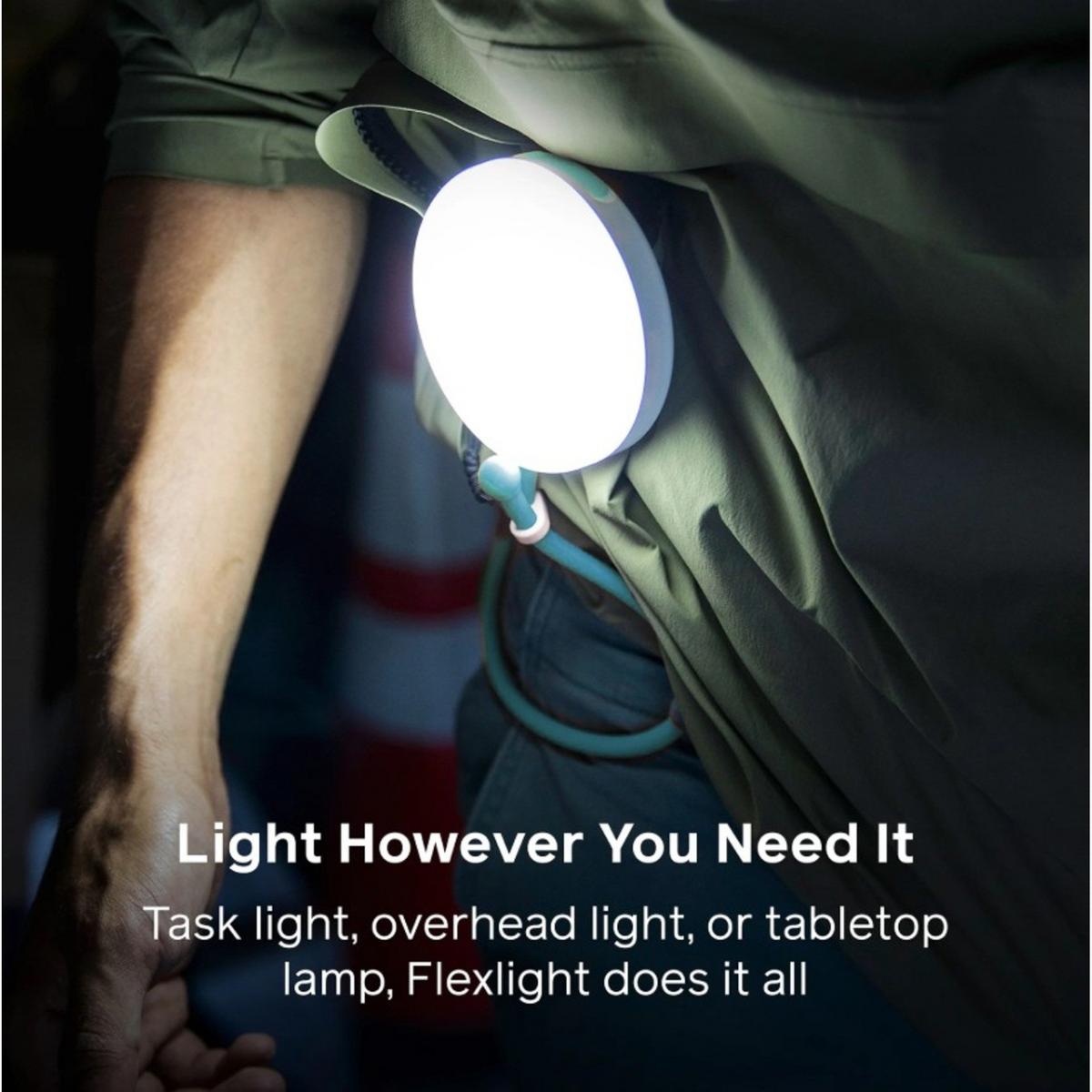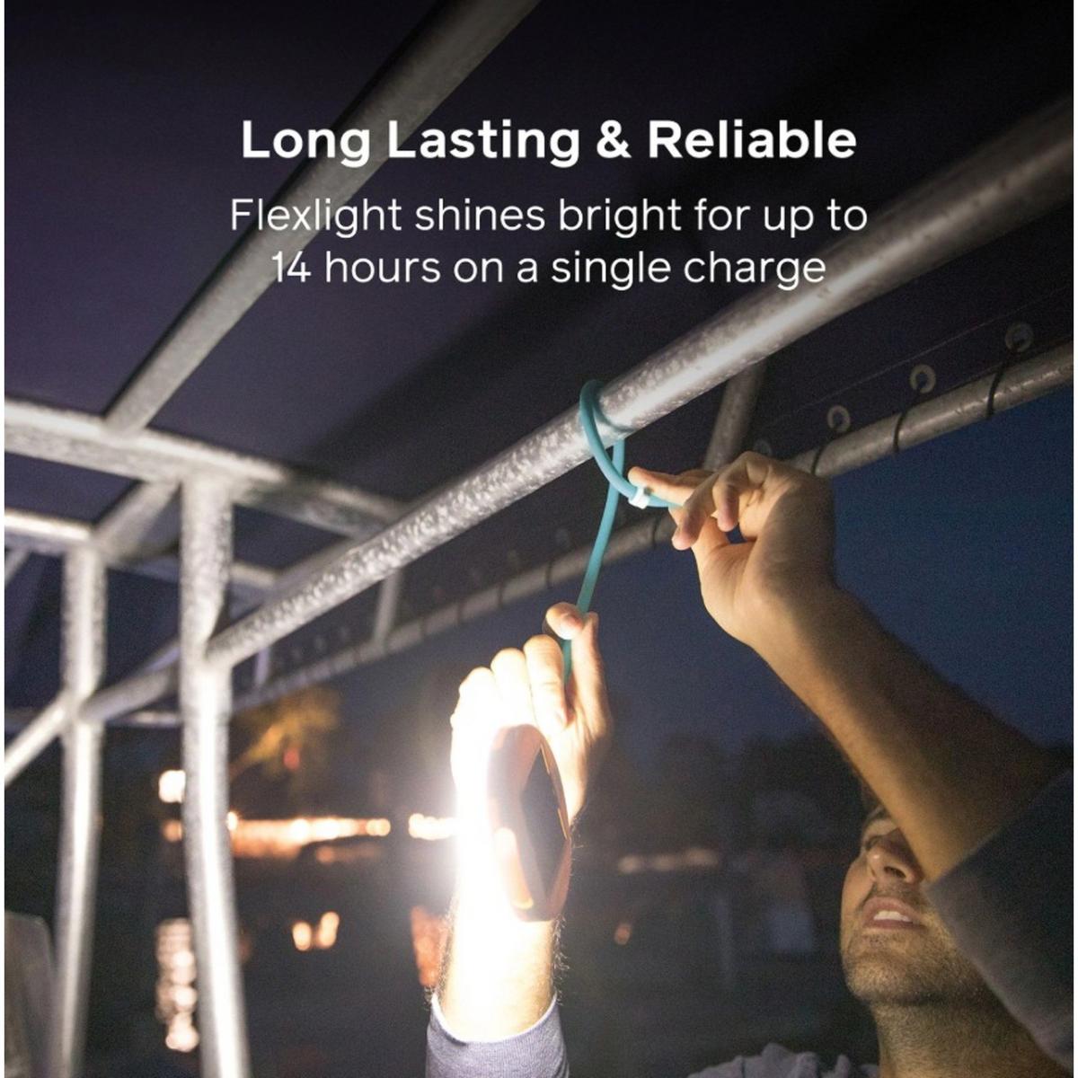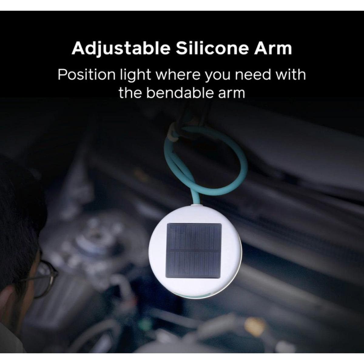 Worklight, emergency light, overhead light, Solar Flexlight does it all. With its adjustable 14 inch silicone arm, and 3 cool white LEDs shining through a matte finish, you can direct light however you choose for up to 14 hours on a single charge. Whether you set it up as a lamp, hang it from above, or attach it to your belt, Flexlight has you covered.