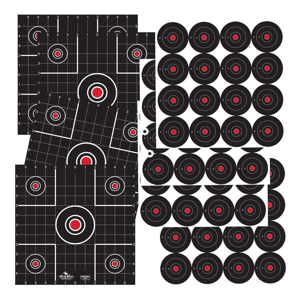 {"reviews":[],"offset":0,"limit":10,"total":0}"Full Description:\nDirty Bird® Targets offer great value and maximum reactivity. Any bullet strike on a Dirty Bird® Target is instantly recognizable, even at a distance. Durable, non-adhesive target material can be mounted virtually anywhere and are equally well suited to indoor and outdoor use.\n\nFeatures:\n\u003cul>\n\u003cli>Instant splatter feedback\u003c/li>\n\u003cli>Heavy, tagboard construction\u003c/li>\n\u003cli>6 - 3 inch Bull's-Eye Targets\u003c/li>\n\u003cli>6 - 12 inch Sight-In Targets\u003c/li>\n\u003c/ul>\n\n"