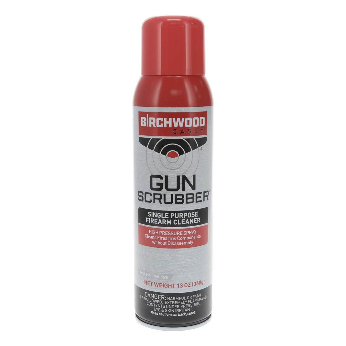 Cleaning your firearms just got a whole lot easier thanks to Birchwood Casey's Gun Scrubber Firearm Cleaner. Gun Scrubber firearm cleaner is a pressurized, fast evaporating firearm cleaner that cleans internal metal firearm parts and firearms effectively. While safe for firearm usage, the solvent may harm finished surfaces, plastics, laminates, composites, rubber grips or other materials used in the construction of today's firearms. Always test in an inconspicuous area. Do not allow product to pool on, in, or under firearm, or components to reduce the possibility of damage.
