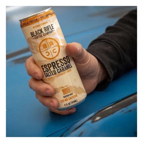 Looking for a perfect blend of sweet and salty flavors? Youre going to love Ready-to-Drink Espresso Salted Caramel canned coffee. This majestic beverage is made with 100% Arabica coffee, packs 200mg of caffeine per can, and its a great source of protein. Black Rifle Coffee Company is the new champ of ready-to-drink coffee brands, and we are proud to be your favorite source of coffee on the go.
