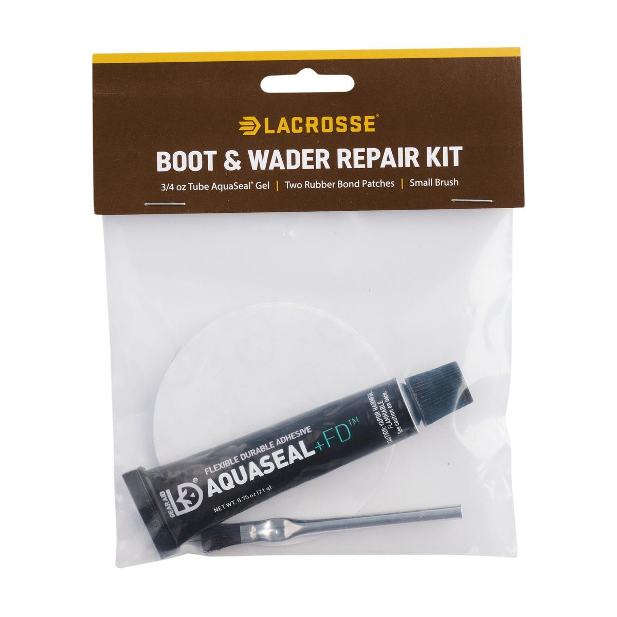 We build our boots and waders tough, but if you ever need a minor repair, we've got you covered. This kit contains everything you need to repair minor tears and holes. A reusable case includes a 3/4 oz tube of Aquaseal, a brush for application, and two heavy-duty patches.BOOT WADER REPAIR