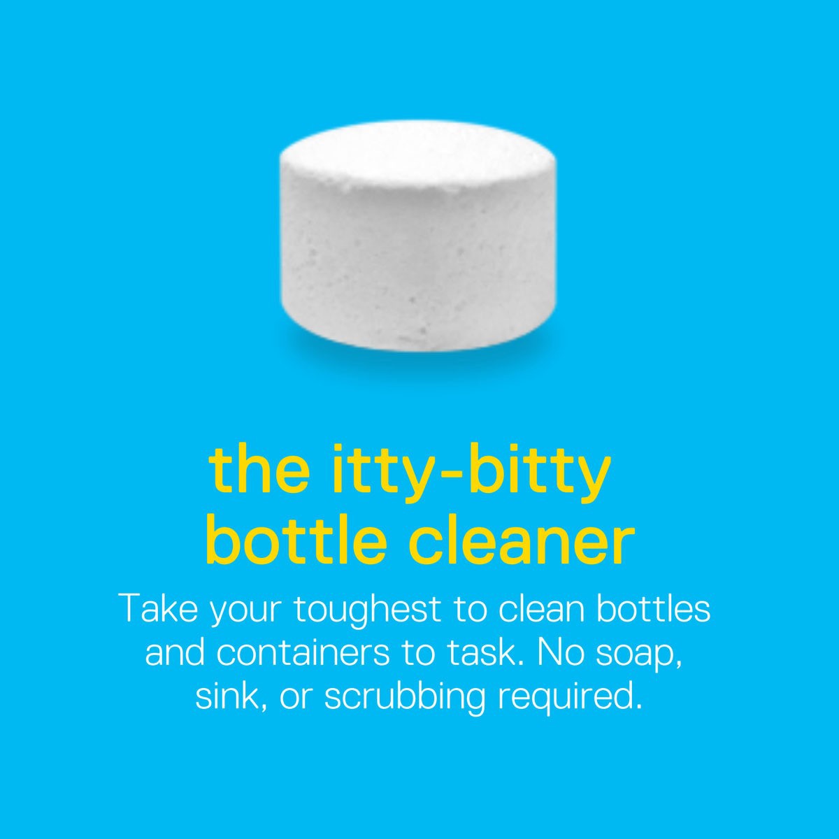 Bottle Bright is the biodegradable, stain-fighting cleaning tablet that takes your toughest-to-clean bottles to task. Easy-to-use and ultra-efficient, Bottle Bright tablets dissolve in water creating tiny, effervescent bubbles that power through stubborn stains and odors, cleaning your favorite bottles and containers in only a matter of minutes with no scrubbing, rubbing or sponging required.