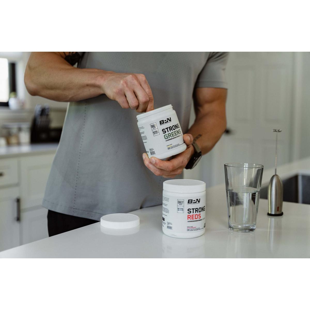 BPN Strong Greens is a powerful superfood blend designed to improve your overall health and well-being. It's packed with nutrient-dense ingredients like spirulina, wheatgrass, and turmeric that help detoxify the body, boost immune function, and promote optimal digestion. Not only does it offer a potent dose of greens, but it also tastes fantastic, making it an enjoyable way to ensure you're getting your daily dose of essential vitamins and minerals. With BPN Strong Greens, you're just one scoop away from elevating your health to new heights.