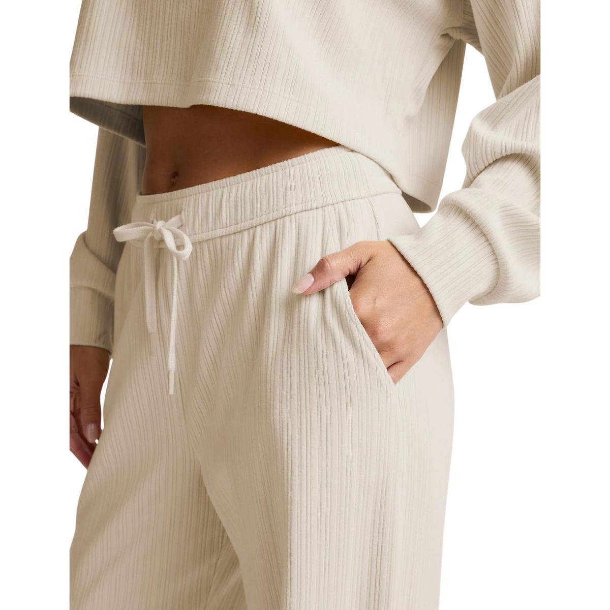 Inhale, exhale , drop your shoulders, unclench your jaw. Similarly, the Breathe Easy Ribbed Wide Leg Pant is made for adding a little relaxation to your day. The pants are equipped with an elastic waistband with an adjustable drawcord for your best fit.