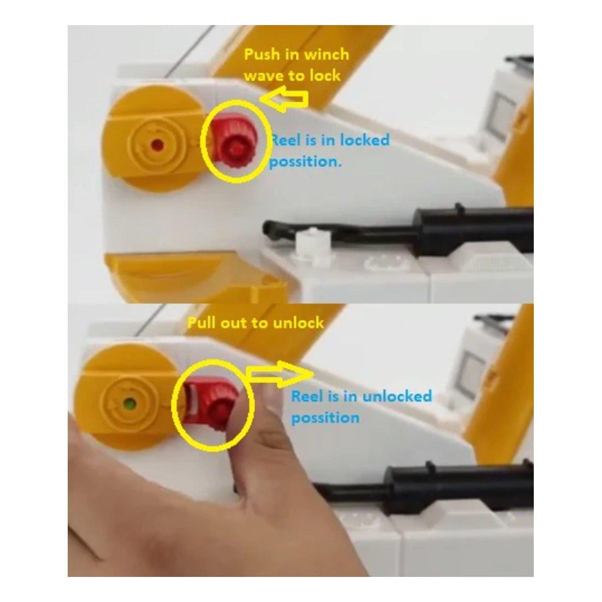 The boom on the MACK Crane Truck extends to 50 inches tall, with an extension piece that snaps on to the end of the boom. The telescopic and height-adjustable jib works with a patented adjusting cylinder and there is a device for quick and noiseless lowering of the die cast hook. There are 4 outriggers (stabilizer legs) to ensure the highest degree of stability, as well as, a counter weight that can be filled with sand to balance the load of the crane. The Mack Truck has swing-out mirrors, soft rubber-like sculptured tires and a view of the engine when the hood is unlatched. The Operator’s Cab has a sliding panel door for easy access and the crane swivels 360°.