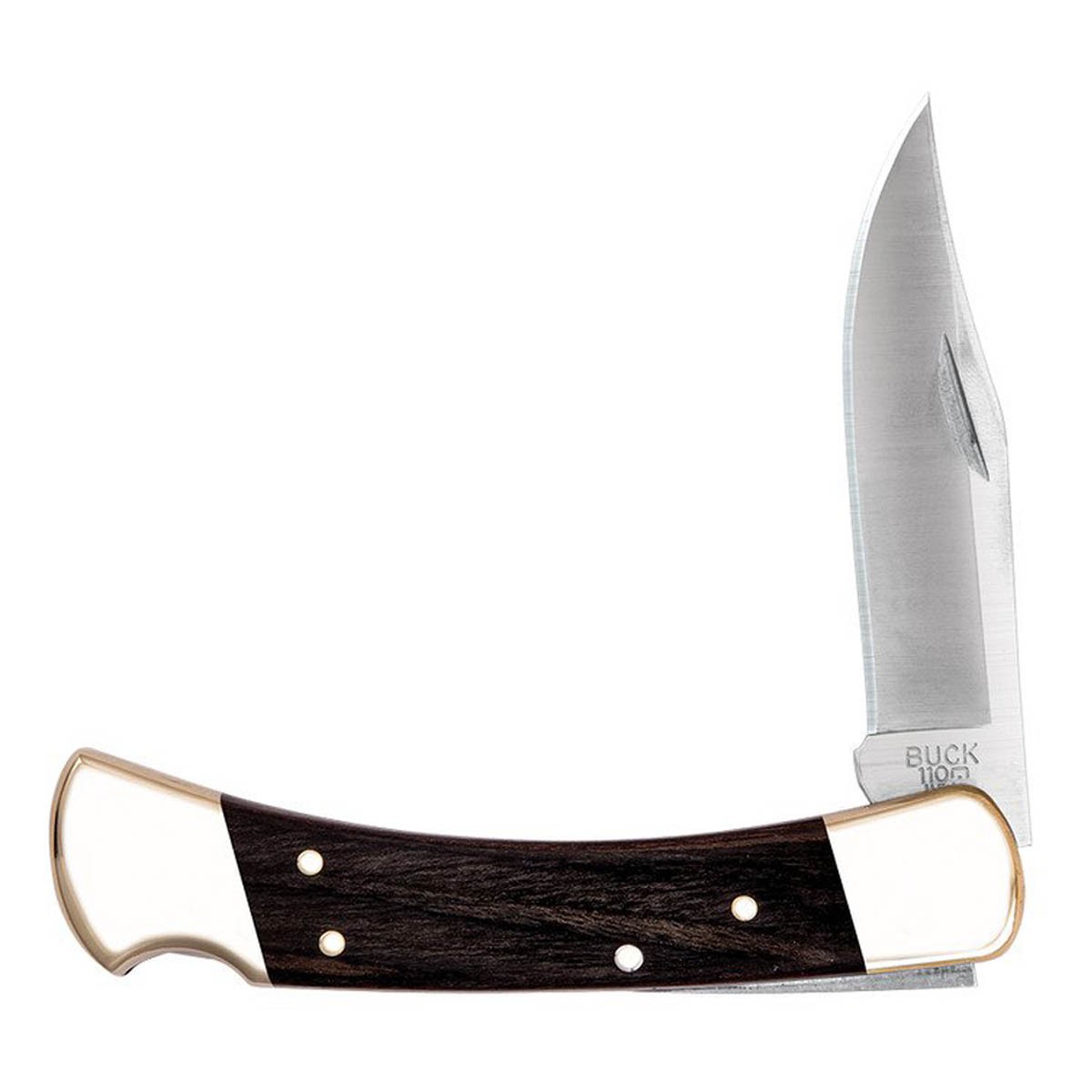 The Buck 110 Folding Hunter Knife was originally crafted in 1963 with outdoorsmen in mind. The Buck 110 knife is built with 420HC stainless steel that has been heat-treated for excellent sharpness and edge retention. A lockback system on the Folding Hunter locks the blade into place when open to prevent it from snapping shut while you cut. Plus, the knife handle has a timeless design and is made with genuine ebony wood from sustainable sources in Cameroon. With a crescent tip for fine detail work, the Buck 110 Folding Hunter Knife has been one of American's favorite knives for over 50 years.