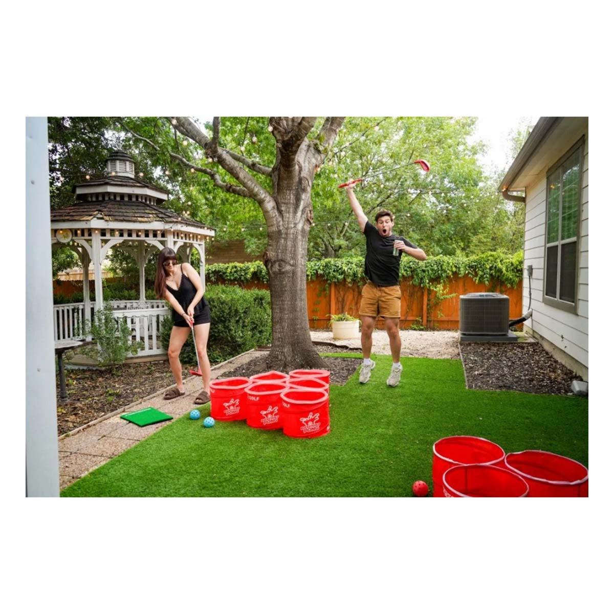 Plays just like the classic party pong game but with an oversized golfing twist.