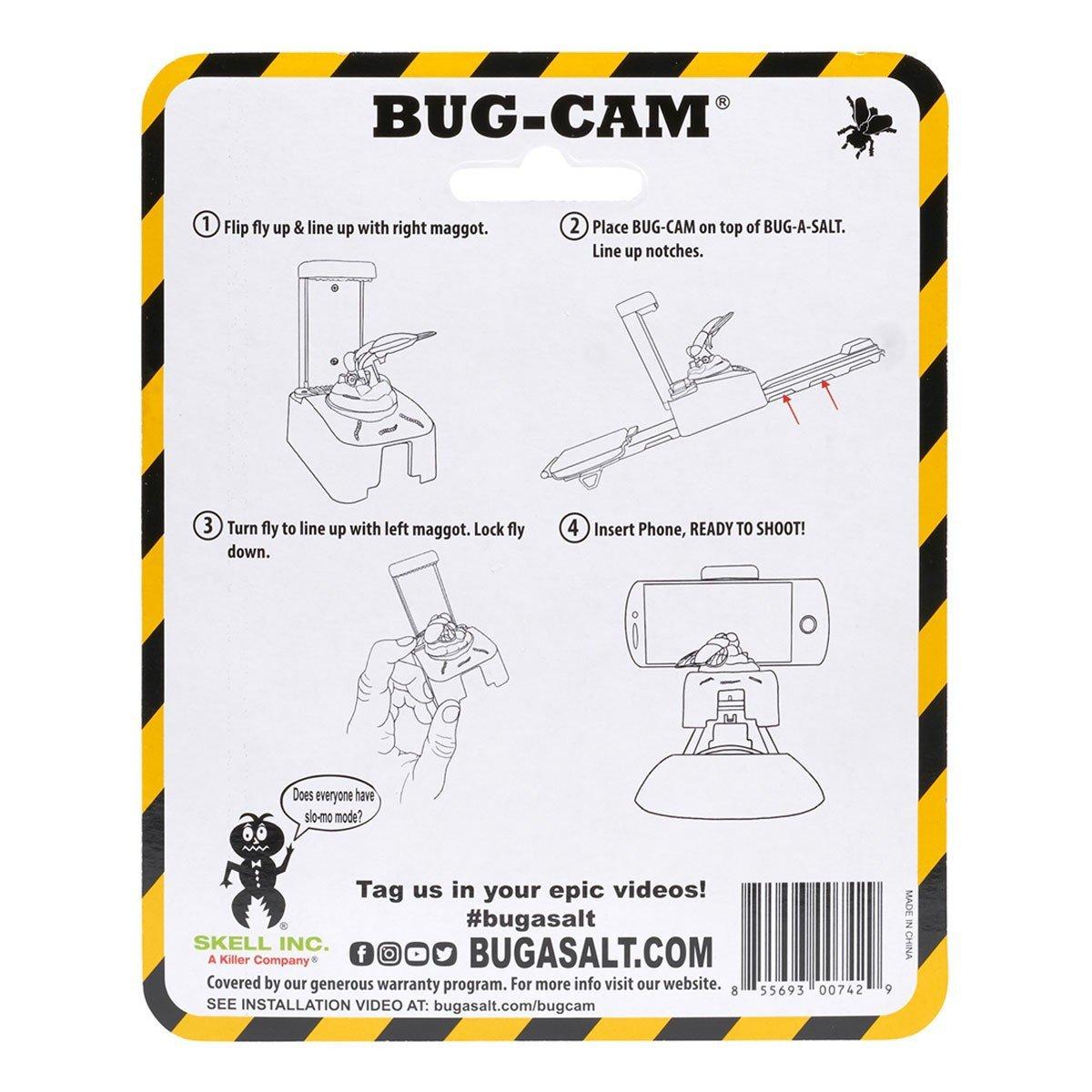 Engineered to mount on top of the rail for BUG-A-SALT versions 2.0, 2.5, and 3.0. Insert SMART PHONE into BUG-CAM adjustable, universal clamp and fire away - capturing your best kill shots in slow motion, mid-air, and close-up. Tarantino won’t have anything on you after you’re done filming death scenes in your backyard. Send us your greatest video hits and we might reward you with a T-shirt or some schwag.