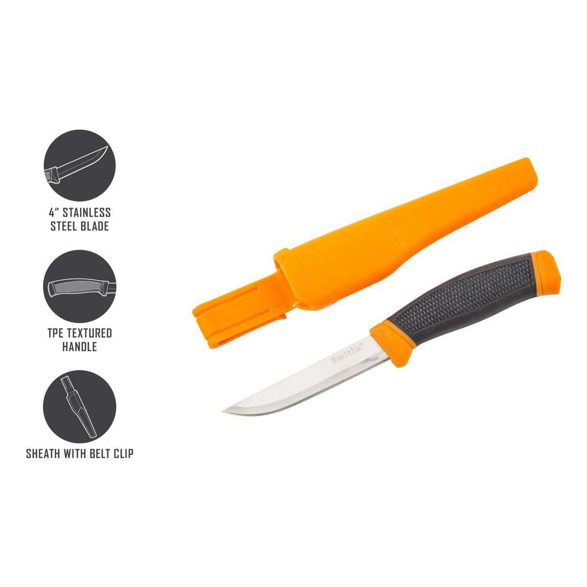 Smith's 4.0" EdgeSport Bushcraft hunting knife is essential for a variety of outdoor adventures such as hunting, fishing, hiking, or camping. It features a razor-sharp 3Cr13 series stainless steel blade that is durable and reliable for a variety of uses. It features a non-slip TPE soft grip ergonomic handle for a sturdy and comfortable grip and it also comes with a breathable protective sheath that will protect you and the knife in your pack or on your belt.