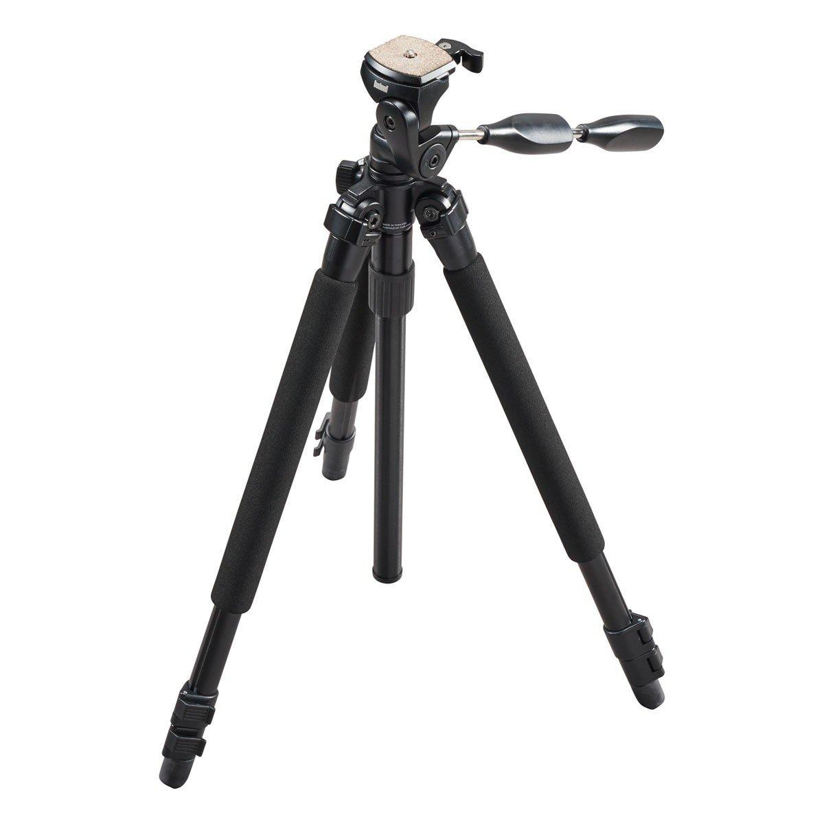 Our titanium model features three-position leg angle adjustment, three-way pan head, two pan and tilt handles and a gearless reversible center column. This is the ultimate stand-up tripod. Three-position leg angle adjustmentThree-way pan headHolds up to 8.8 lbs