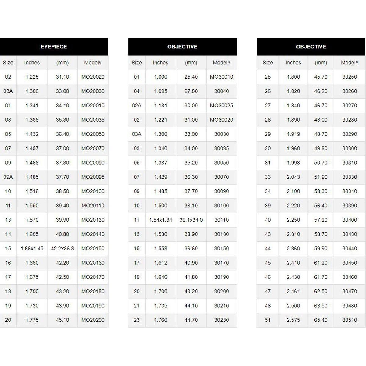 * To ensure proper sizing, measure outside dimensions of Objective and Eye Piece Ends.