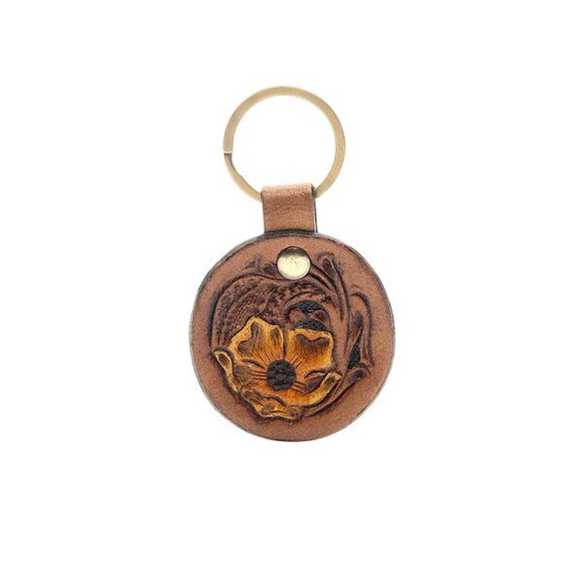 A gorgeous buttercup blossom, delicately highlighted in hues of sunrise yellow, lends a cheerful vibe to this leather key fob. Simply lovely!