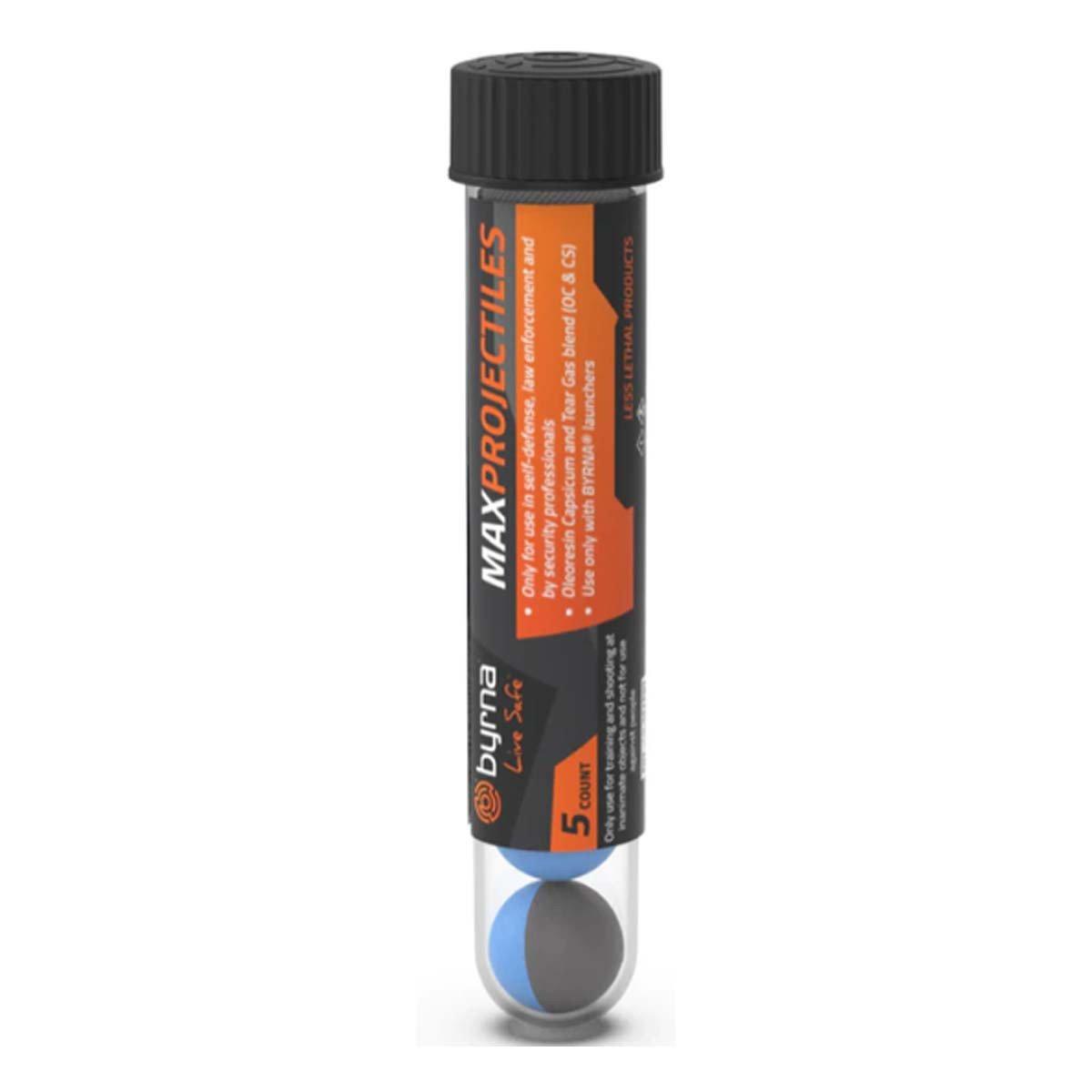 The Byrna HD Max projectiles are the most powerful projectile with 12% active ingredients, containing a combination of OC, CS and PAVA all in one shot.