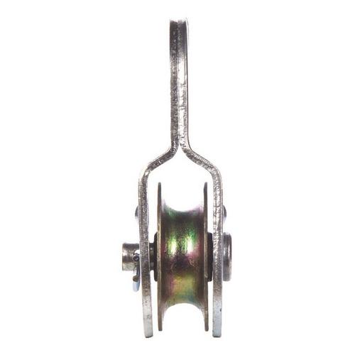 The rigid eye, single sheave pulley. Steel body and die cast zinc sheave. Zinc plated finish. Powder metal bushing to extend pulley life and provide smooth operation. For indoor or outdoor use. Bulk, UPC tagged.