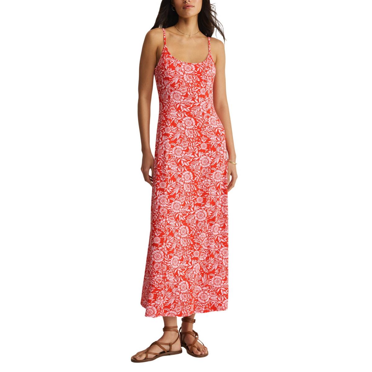 Regular fit Rayon Spandex: 90% Rayon 10% Spandex Scoop neck Sleeveless Adjustable spaghetti straps Midi Length Lightweight Heavy soft wash Length from shoulder is 50 1/2"