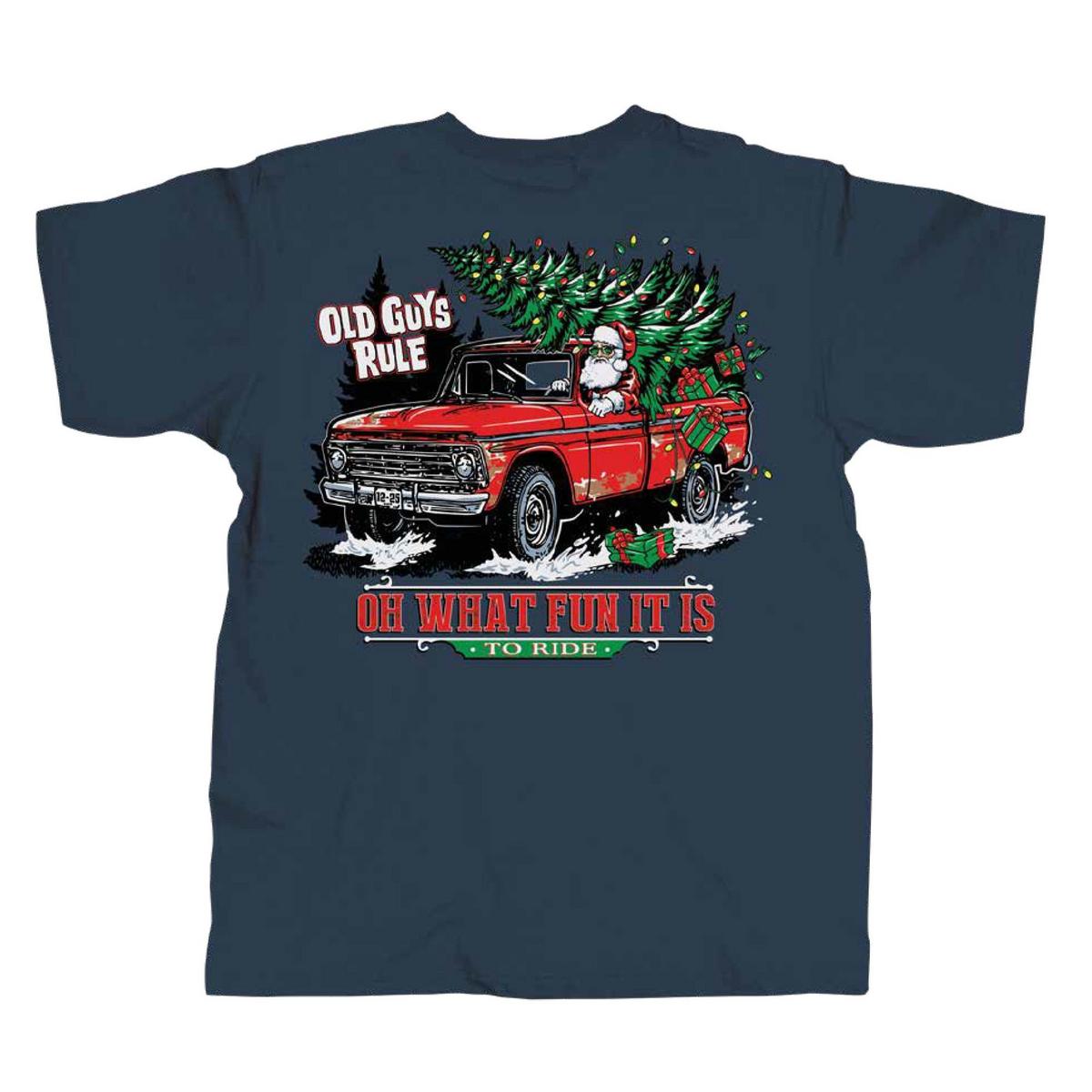 {"reviews":[],"offset":0,"limit":10,"total":0}"Full Description:\nShirt text: Old Guys Rule, Oh What Fun It Is To Ride Front Design: Mini design on left chest, Back Design: Large design, Fit: Runs true to size\n\nFeatures:\n\u003cul>\n\u003cli>Graphic Tees\u003c/li>\n\u003c/ul>\n\nSpecifications:\n\u003cul>\n\u003cli>Short sleeve\u003c/li>\n\u003c/ul>\n"