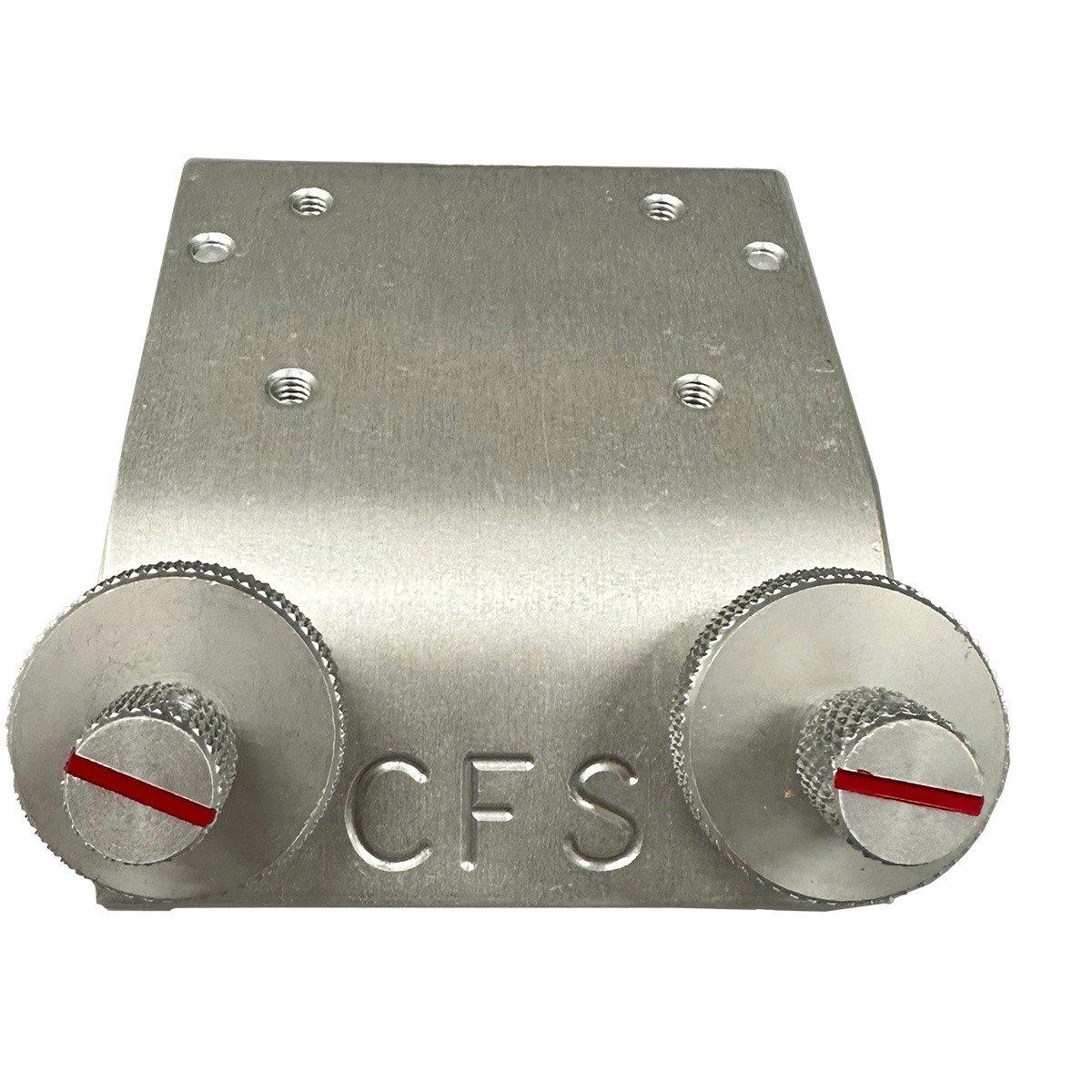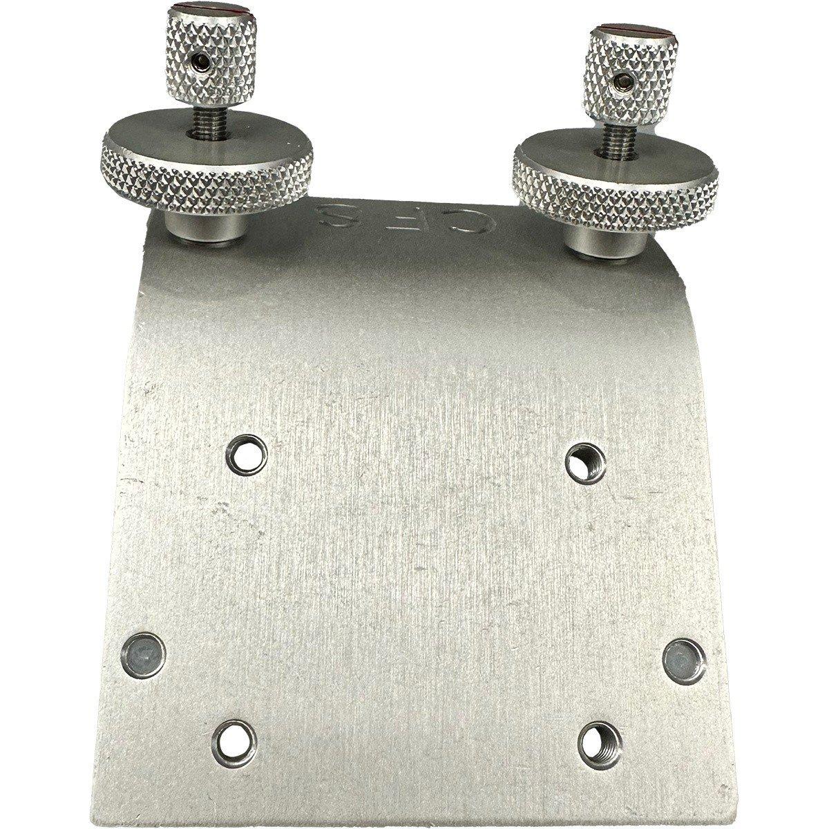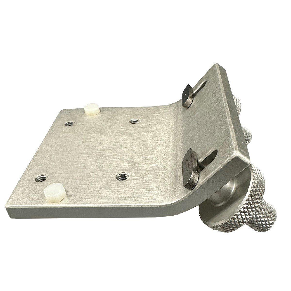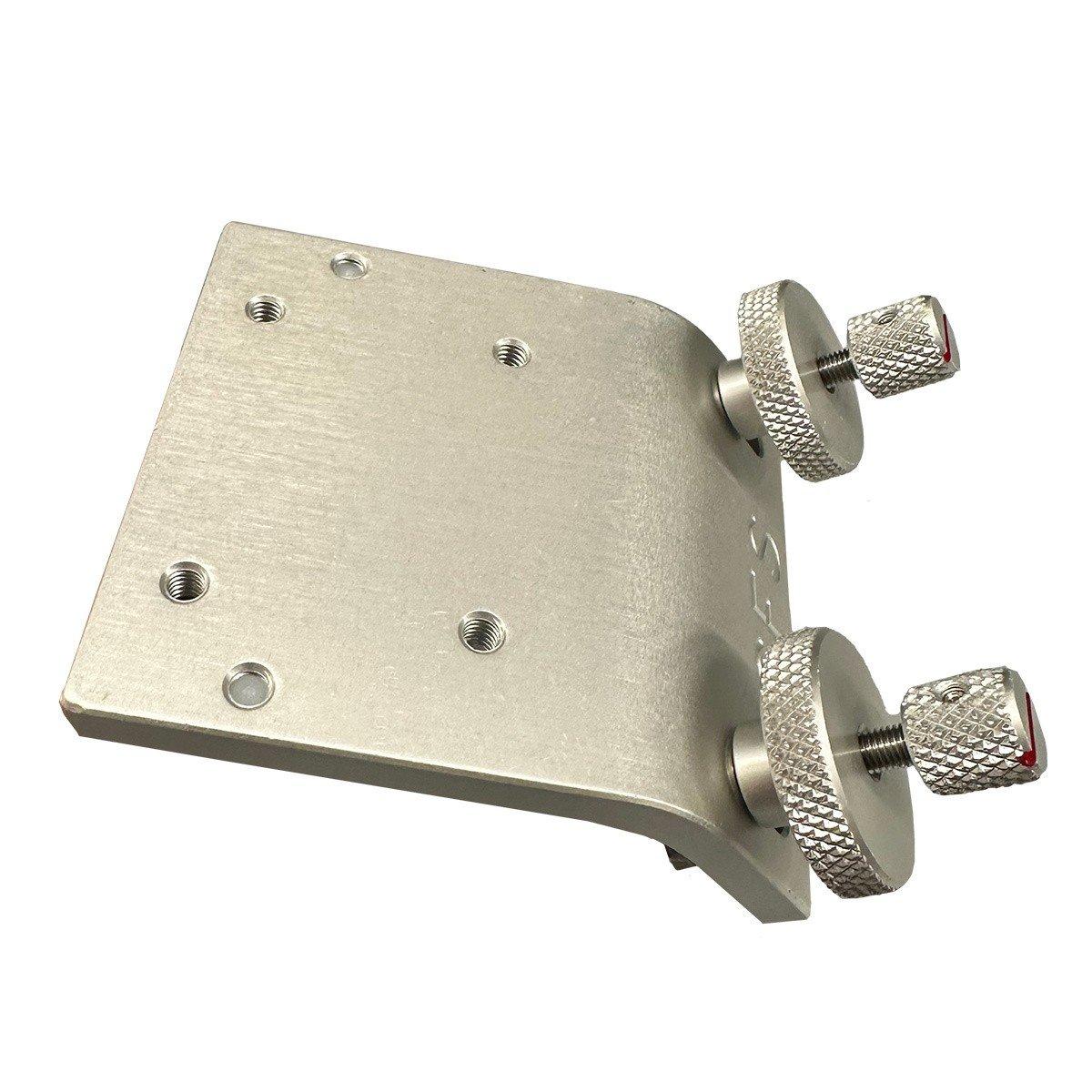 The 42° Lund mount is machined from a solid piece of aluminum bar and is pressed to create the angled bend. The slotted keys are made from stainless steel and are attached to all solid aluminum components which complete the round knobs. You will know when your unit is locked into place when the red line gauge is in the vertical position. Also, provided with this unit are two synthetic levelers at the end of the unit to give the mount added support and to protect the gunnel from unnecessary scratches.