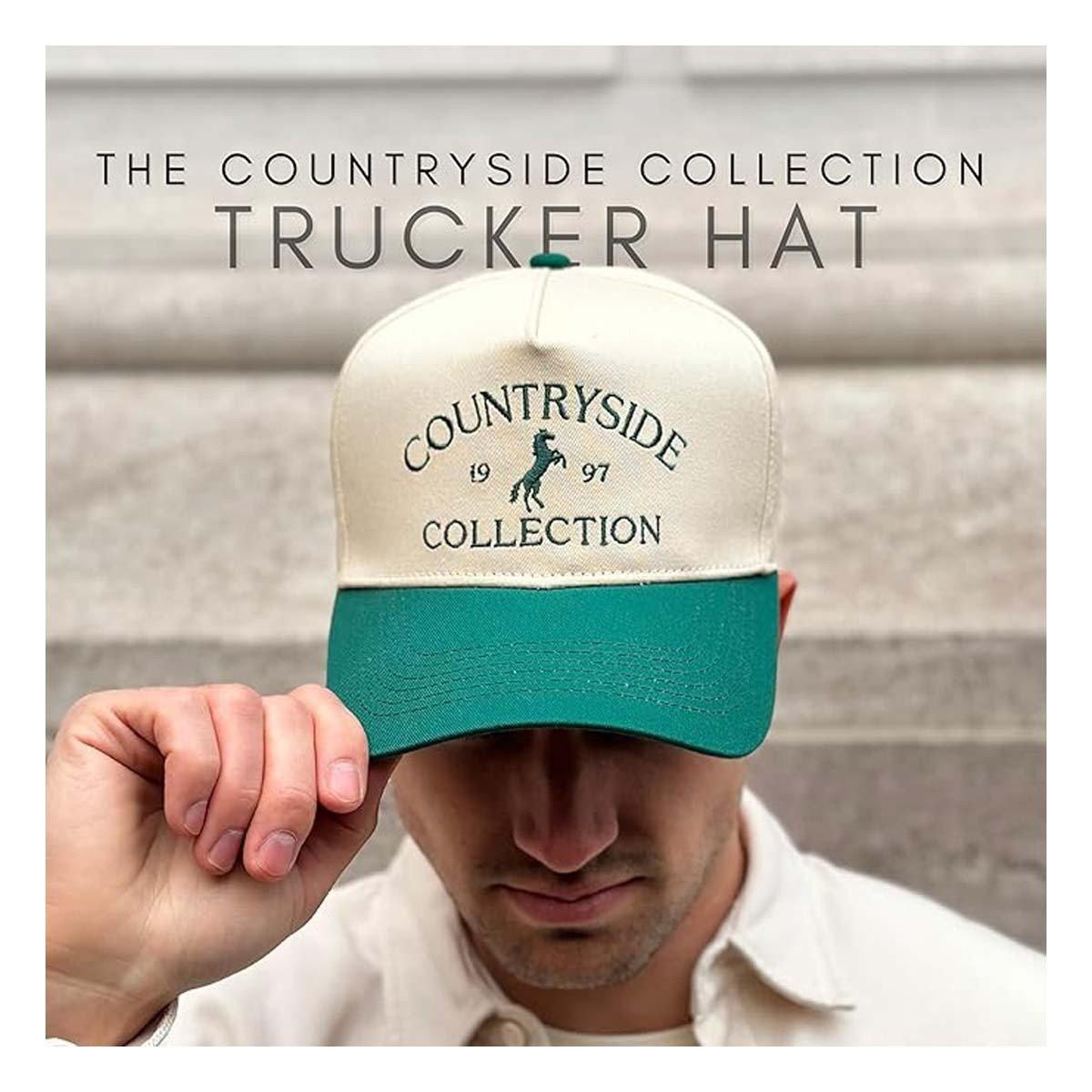 These aesthetic vintage trucker hats feature a two-tone beige color palette with quality embroidery. Available in green, black, brown, red, navy, and more colors coming soon, they offer a true country vibe. Whether you're seeking trendy vintage hats for men or country hats for women, our collection has the perfect option for you. With designs featuring quality embroidered letters such as "Countryside Collection," "Timeless," or "Vintage Cowboy," these hats are versatile enough for everyday wear or special occasions.