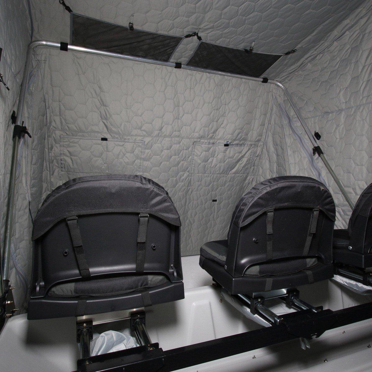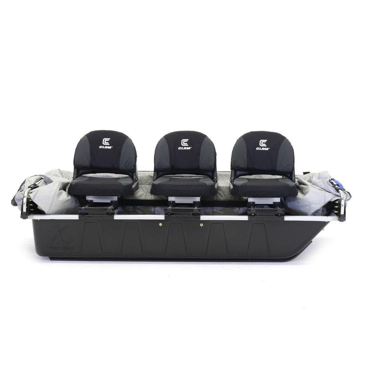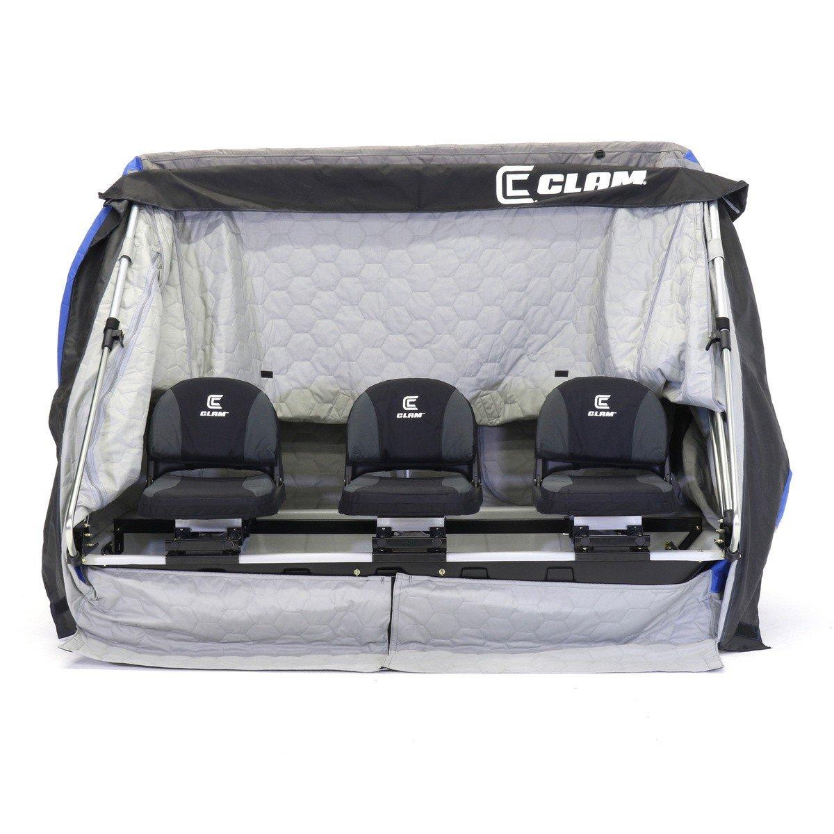 The Clam Fish Trap X Series X300 Pro Thermal XT Ice shelter is perfect to sit up to 3 anglers on the ice. This Clam X300 Pro Thermal XT Ice Shelter features an ultra-tough 1800 total denier fabric to withstand the toughest of winter weather conditions. The side doors offer easy entry and exit access without tripping over your gear or supplies while the grey-colored inner tube helps you more easily locate stored gear. The Clam X-Series offers quality poles and skins that are thick with the toughest of tubes. Plus, This Clam ice shelter has 40 square feet of fishable area to use for ample space for all 3 anglers. Enjoy a full day on the ice with this 3-seated Clam Fish Trap X Series X300 Pro Thermal XT Ice Shelter.