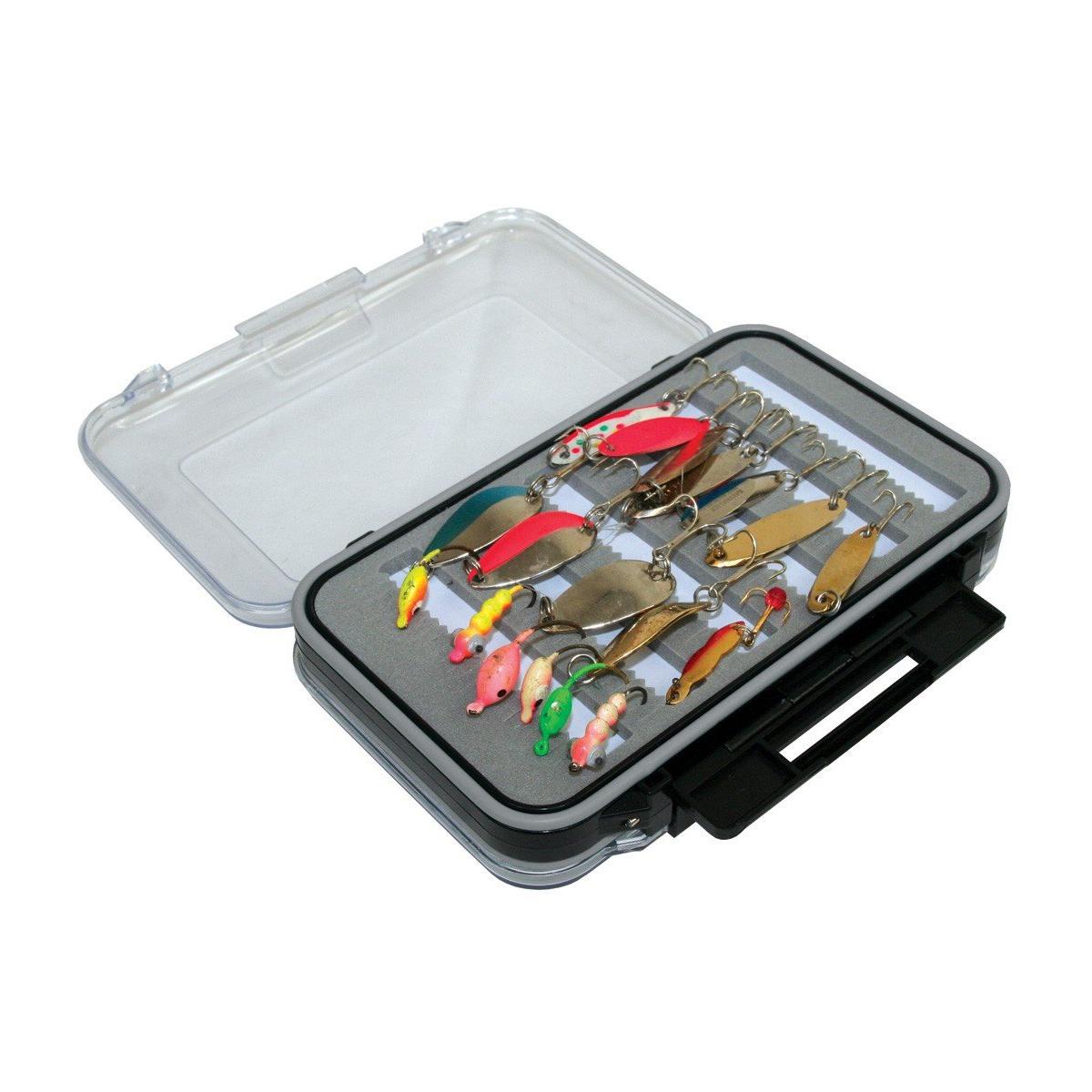 The Clam Jig Box is the perfect tool for any ice angler looking to conveniently store jig baits for the ice season. This Clam jig box is designed with a durable construction and a compact build for easy storage and transport. The box is filled with a variety of pre-cut jig slots so you can fit all your tackle in one compact box for convenience. With its easy-to-use design, the Clam Jig Box is a great choice for any ice angler with lots of different jig baits looking to make the most of their ice fishing experience.
