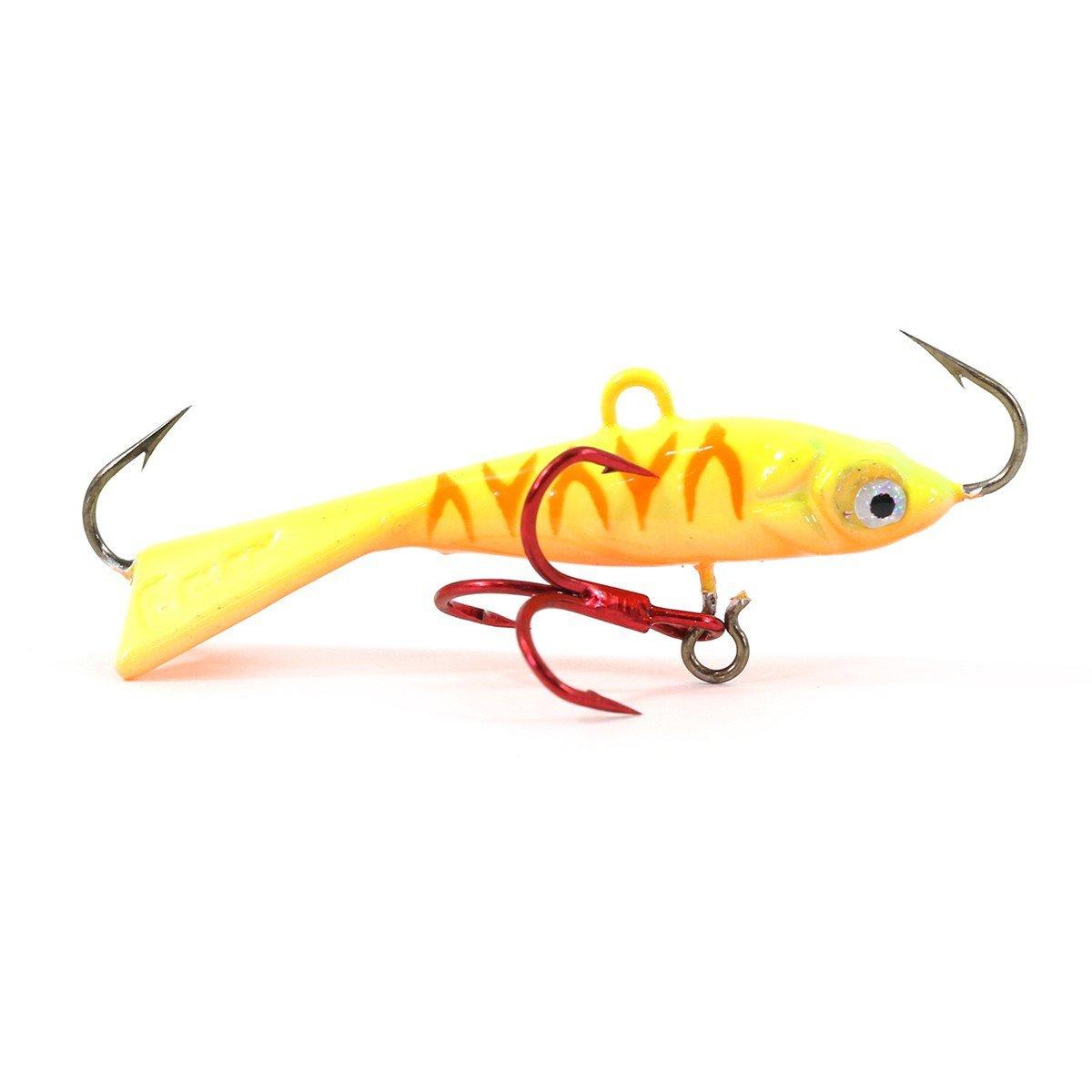 The Clam Tikka Mino Jig is the ultimate jigging minnow for ice fishing and open water - now available in SCHEELS Exclusive colors like Clown Glow and Glow Orange Tiger. Designed for a vertical presentation, the Clam Tikka Mino swims and darts just like a panicked baitfish so fish can't resist striking. The environmentally-friendly Zinc Alloy construction and molded features make this plastic bait incredibly durable. Plus, Prism Holographic Colors and UV Glow paint are easy for fish to see, even in murky or dark water. Lure them in and catch more fish with the Clam Tikka Mino Jig.