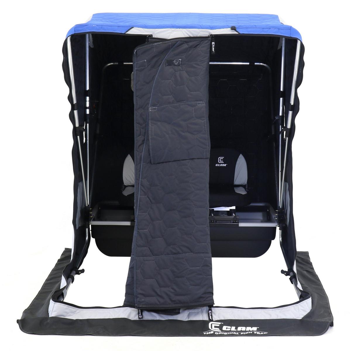 Stay warm while ice fishing this winter with the Clam Yukon XL Thermal Flip-Over Ice Shelter. This two-person Clam Yukon XL Thermal ice shelter is super portable and easy to set-up. The full thermal skin traps heat and reduces condensation for even more comfort while fishing. With a gray interior sled, this Clam Yukon XL Thermal shelter makes it easy for anglers to find gear, while the two deluxe seat system features seats that move front to back and left to right. Plus, the Clam Yukon ice shelter features a cutting edge design with a side symmetry door system that makes moving in and out easier. The Clam Yukon XL Thermal Flip-Over Ice Shelter is a great option for multiple anglers.
