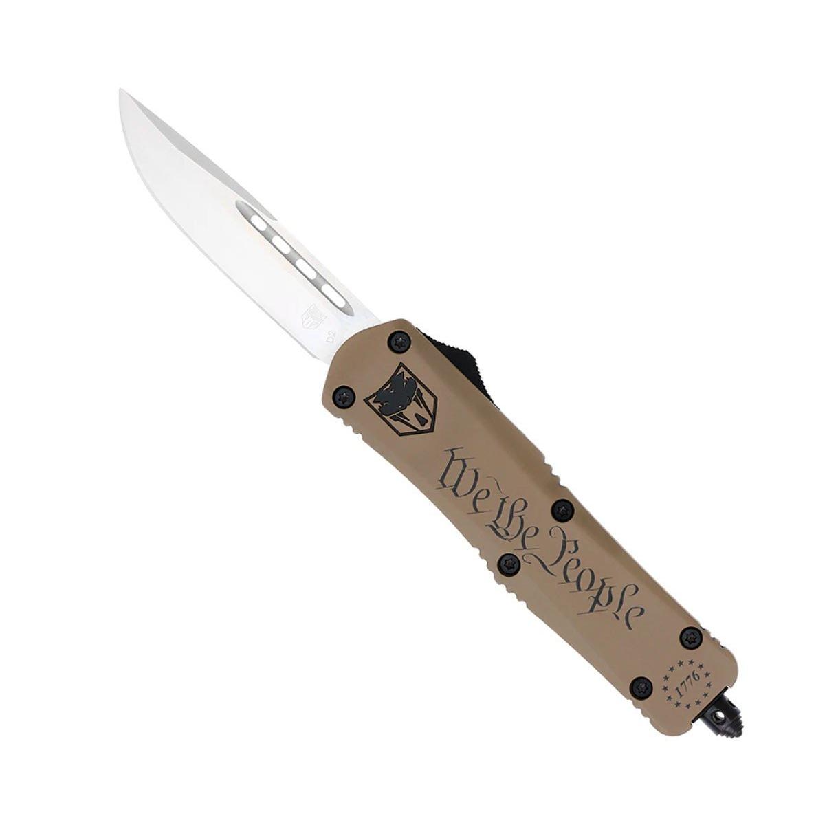 The FS-3 "We the People" is a dual action OTF knife that begins with a high-grade aluminum alloy handle that has been cerakoted and is loaded with a high quality D2 steel blade.