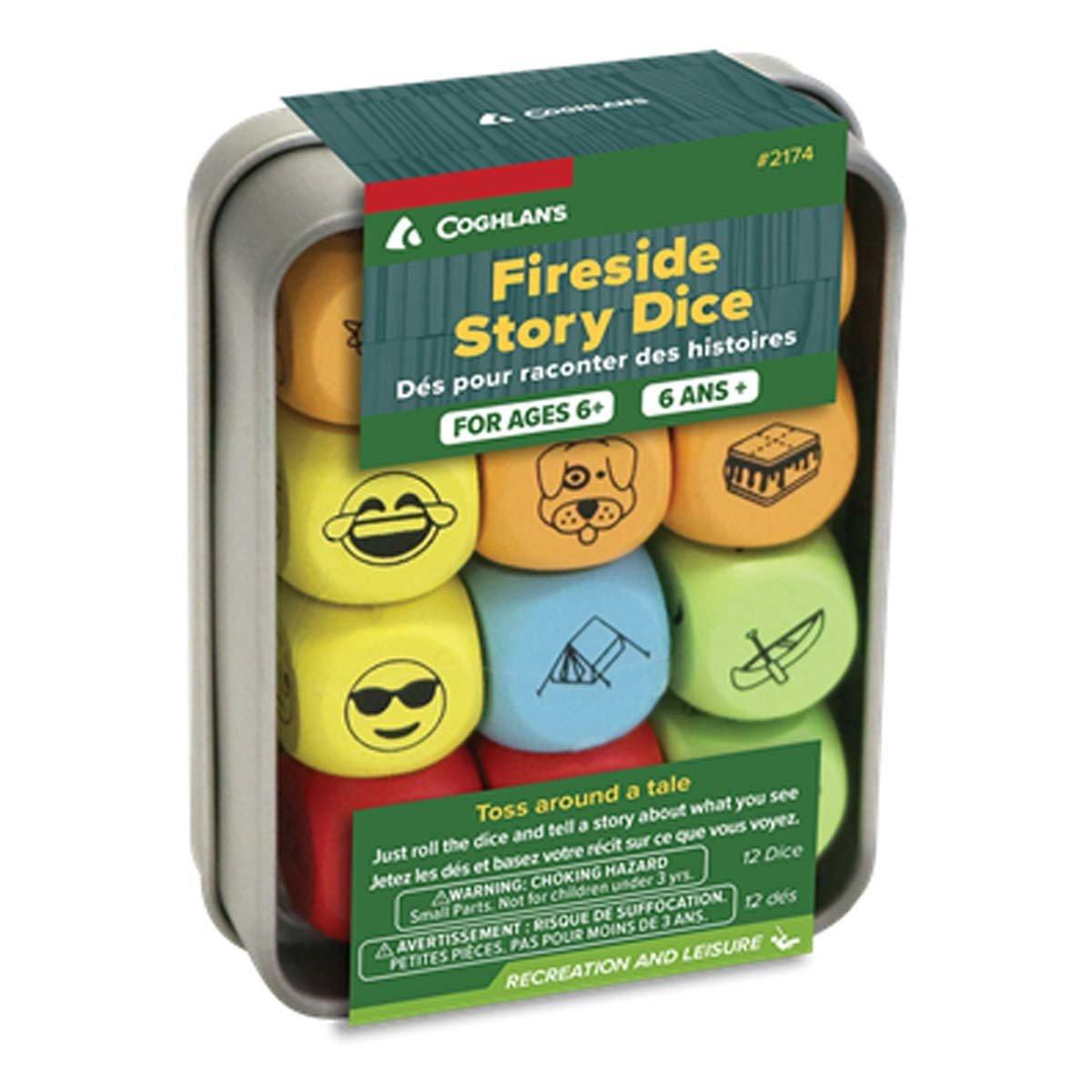 Coghlan's Fireside Story Dice is a perfect game to inspire creativity and let imaginations run wild. Just roll the dice and create a story based on the symbols that appear. With no rules to follow, the symbols serve as prompts for endless possibilities. The dice are color-coded by theme for added inspiration. After the storytelling, store the dice in the durable tin box. This game brings back the tradition of telling stories around the fire and is perfect for any camping trip or outdoor adventure.