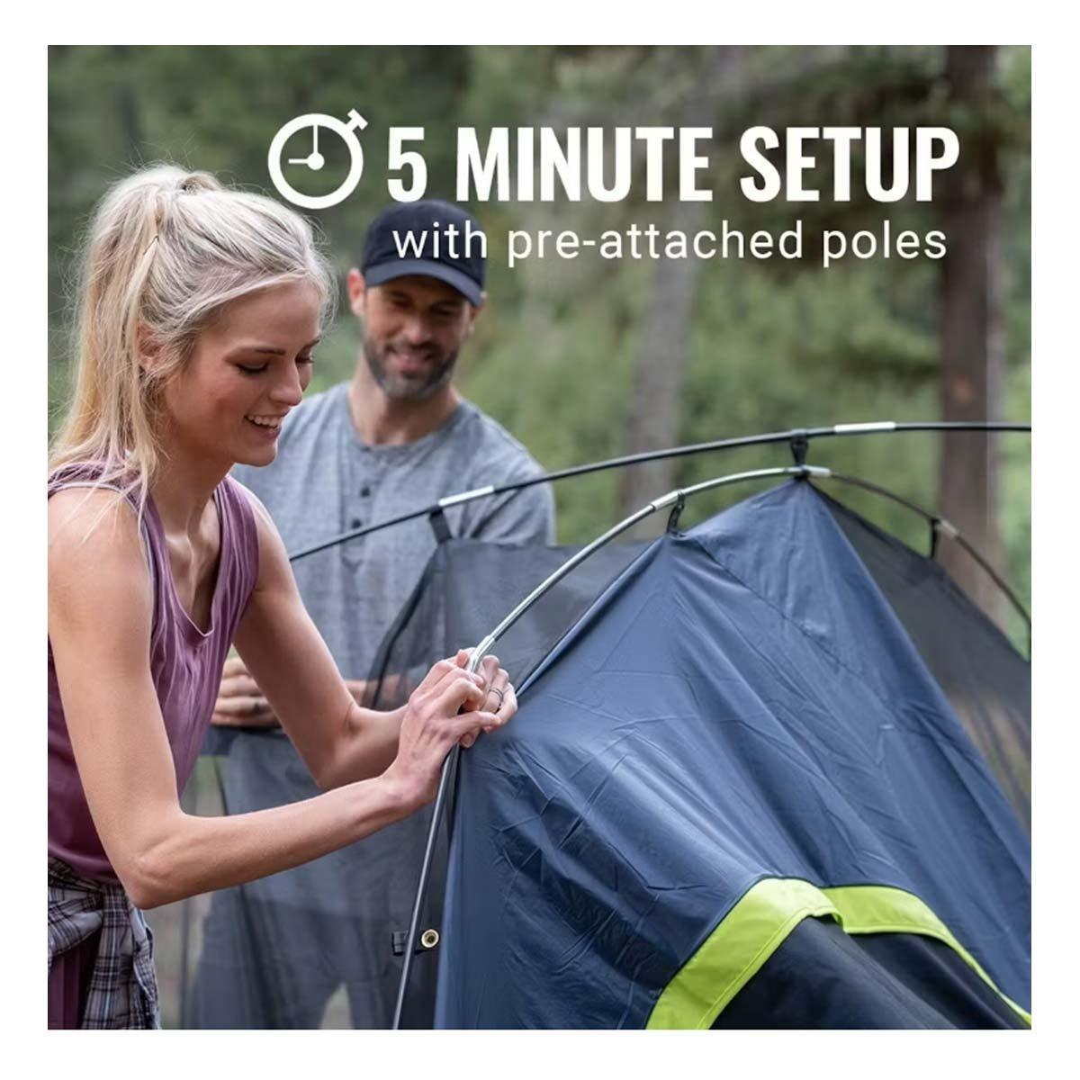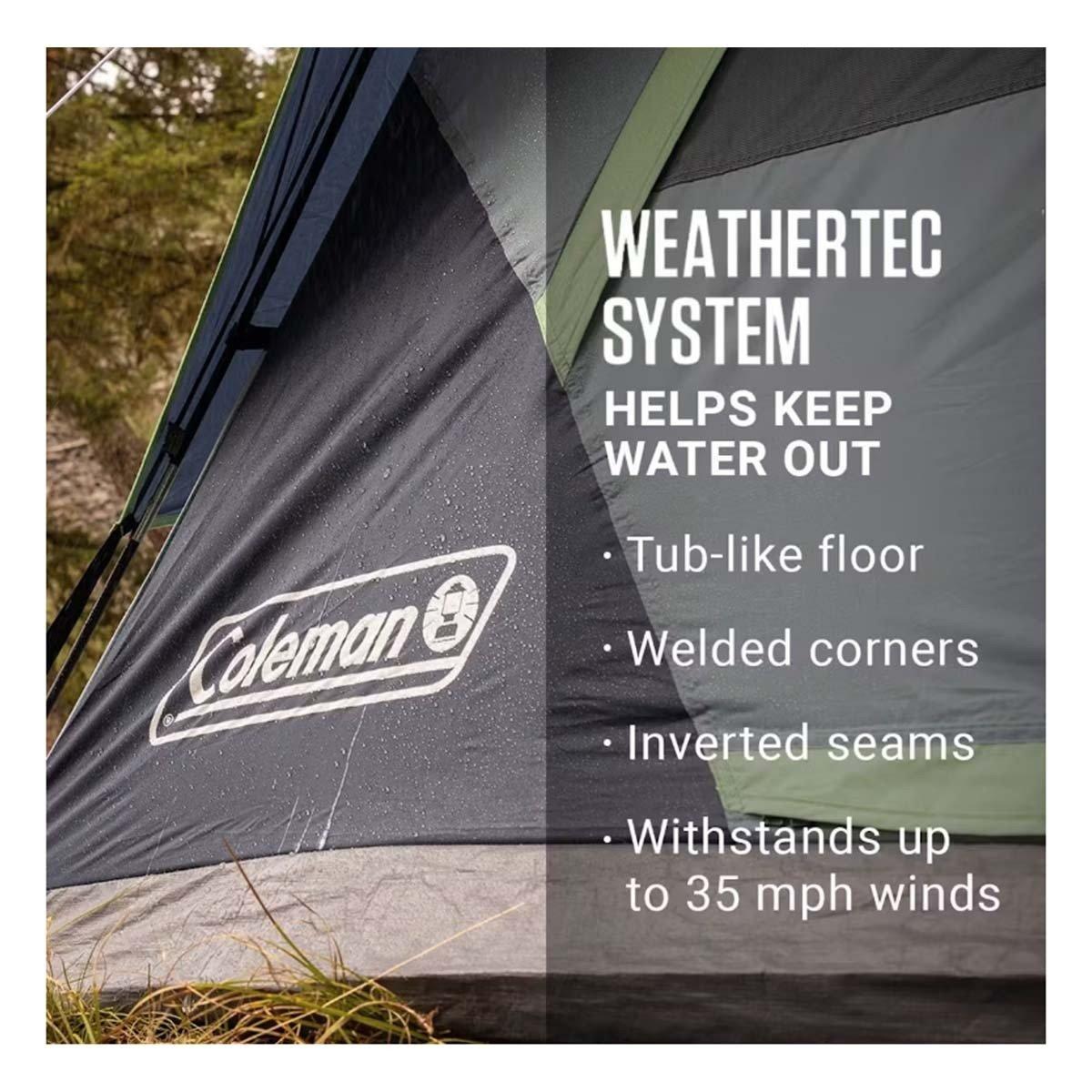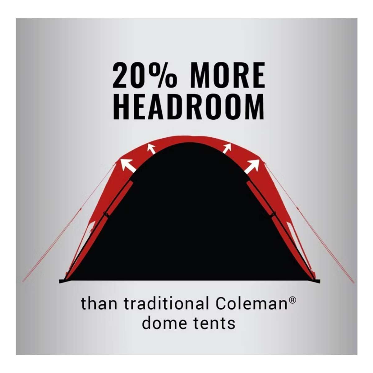 With a quick setup under 5 minutes, the Coleman® Dark Room™ Skydome™ Camping Tent lets you enjoy more time with friends and family on your next camping trip. There is plenty of room to stretch inside the spacious interior thanks to the nearly vertical walls that offer 20% more headroom than a traditional Coleman dome tent, and a wide door design means you can move air beds, sleeping bags, and other gear in and out with ease. Plus, Dark Room technology blocks 90% of sunlight and reduces heat inside the tent (vs. a comparable Coleman tent) so you can rest at any time in comfort. Downpour in the forecast? Not to worry, the WeatherTec™ system's tub-like floor, patented welded corners, and inverted seams help keep you and your gear dry. This 4-person tent's compact size makes it a great choice for car camping or backpacking adventures. Skydome tents are available in a range of sizes (2-person, 4-person, 6-person, or 8-person), with or without Dark Room technology.