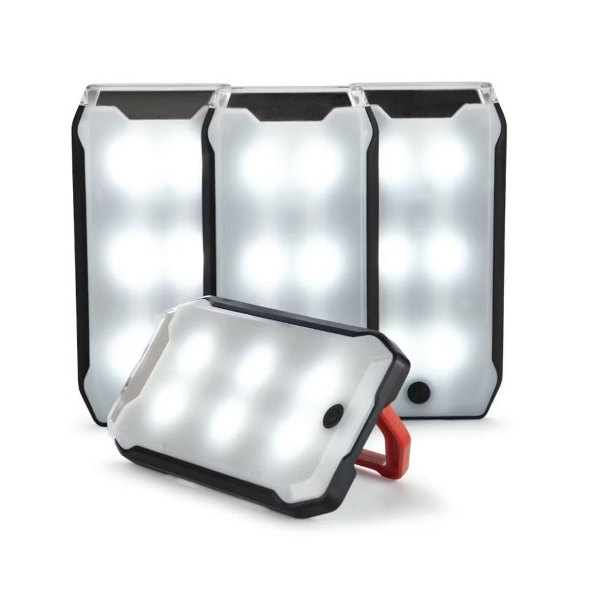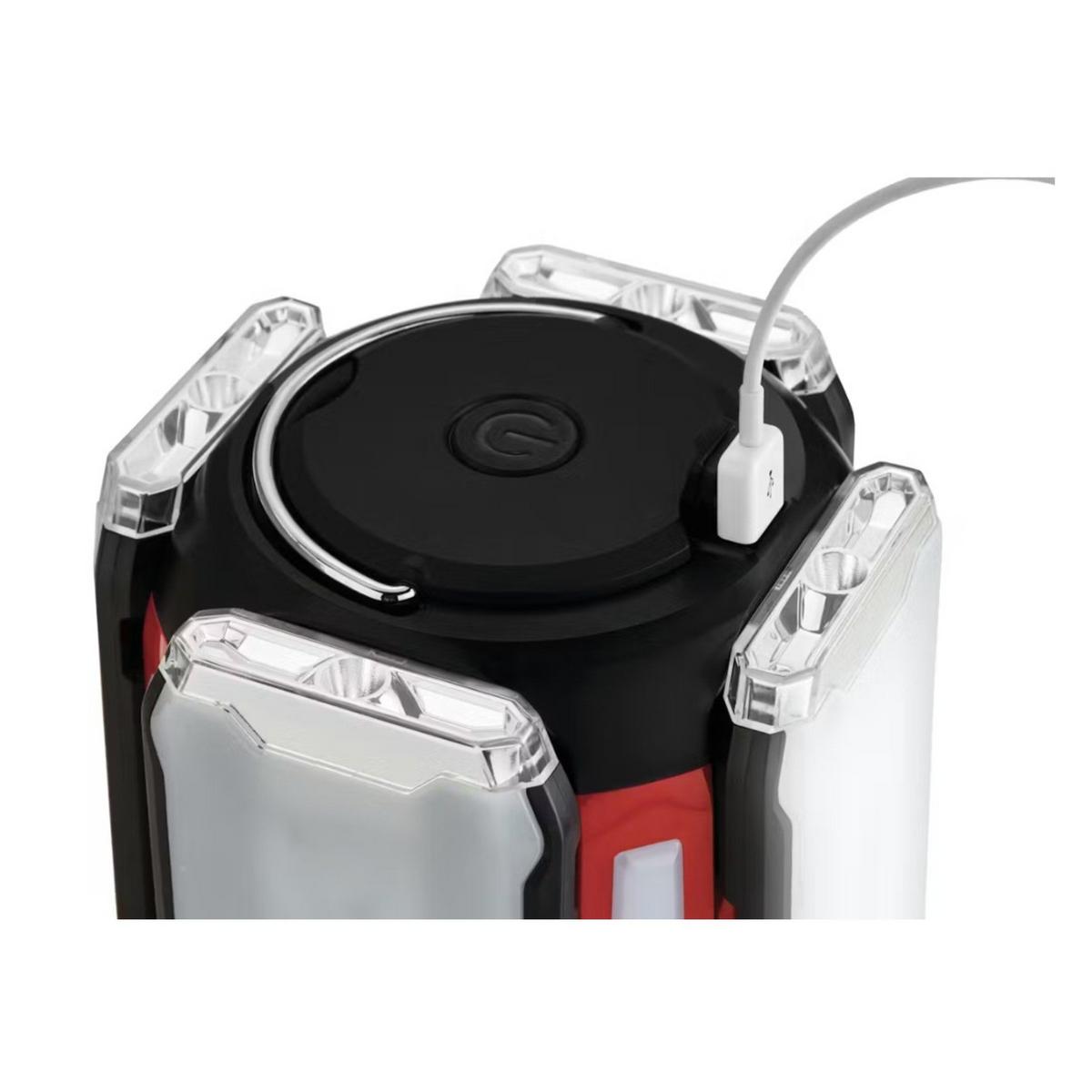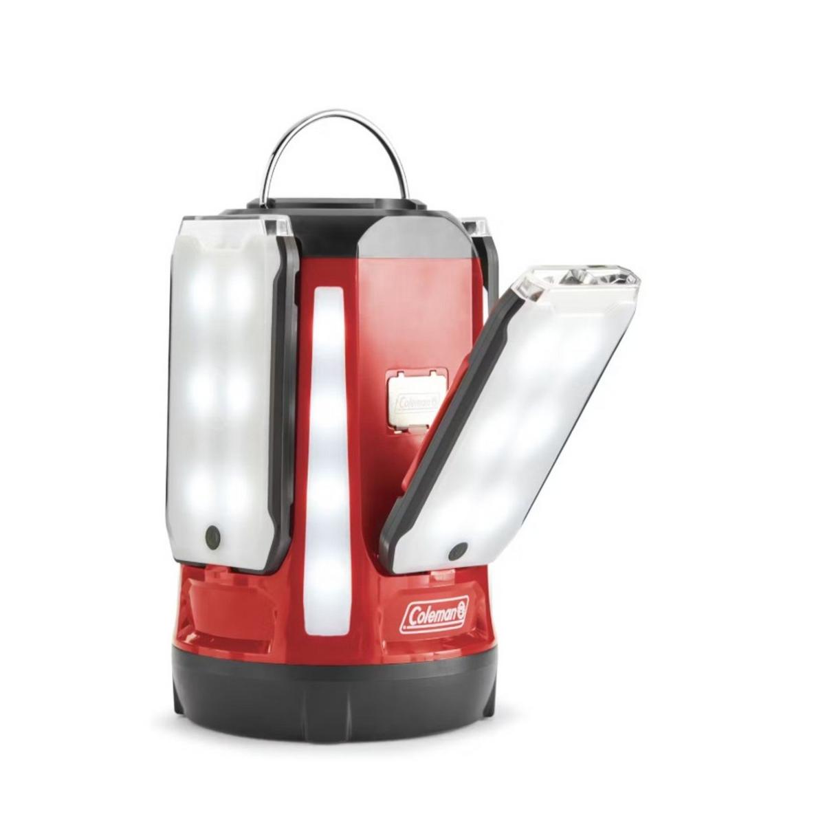 Get the convenience of multiple lights in one when you have the Coleman® Quad Pro 800L LED Lantern. When you need to take some light with you without taking the whole lantern simply pop one of the take-along light panels off the base to use as a personal light. Each panel also has a built-in flashlight providing the options of directional or area lighting whenever you leave the main area. The magnetic attachment system on each panel lets you stick them to toolboxes car hoods the steel frame of your shelter or other metal surfaces for hands-free light. Or you can flip out the fold down panel handle and use it as a stand to prop the panel up on a table. When you return the panels back to the base the batteries will automatically recharge. If every panel needs to be removed a light on the base will stay lit to help you find your way back to the main campsite. Plus with the mobile charging output you can keep your phone and other mobile devices charged if you're not around a power source or if the power is out. When everything is together the lantern shines up to 800 lumens on high for up to 20 hours or 100 lumens on low for up to 400 hours so you can enjoy good times with your friends and family long into the night.