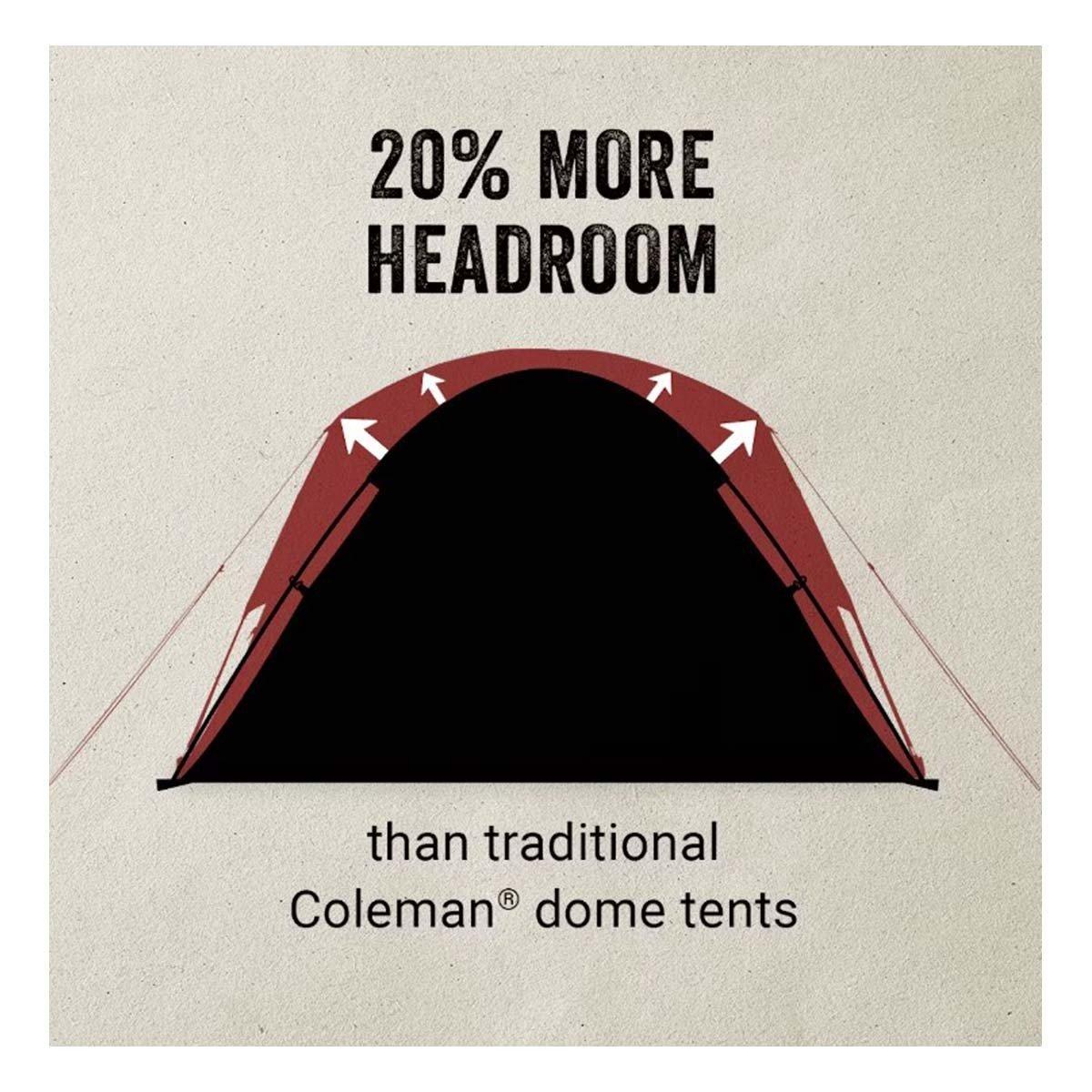 Sets up in under 5 minutes so you spend less time pitching the tent and more time relaxing at the campsite. Enjoy two separate living spaces in one tent with the Coleman® Skydome™ Camping Tent With Screen Room. Features a weatherproof screen room that converts into an additional sleeping area for 1 person, space for extra storage, or more room to lounge. Go ahead and stretch out inside. The nearly vertical walls offer 20% more headroom than a traditional Coleman dome tent. Plus, a wide door design means you can move airbeds, sleeping bags, and other gear in and out with ease. An E-port makes it easy to access an extension cord so you can bring electrical power inside your tent. Downpour in the forecast? This tent features the WeatherTec™ system with a tub-like floor and patented welded corners, while inverted seams and taped seams on rainfly and tent body help keep water out. Plus, the strong frame has been tested to withstand up to 35 mph winds. This 4-person tent is a great choice for car camping with your crew. These Skydome™ tents are available in a range of sizes: 4-person, 6-person, and 8-person.
