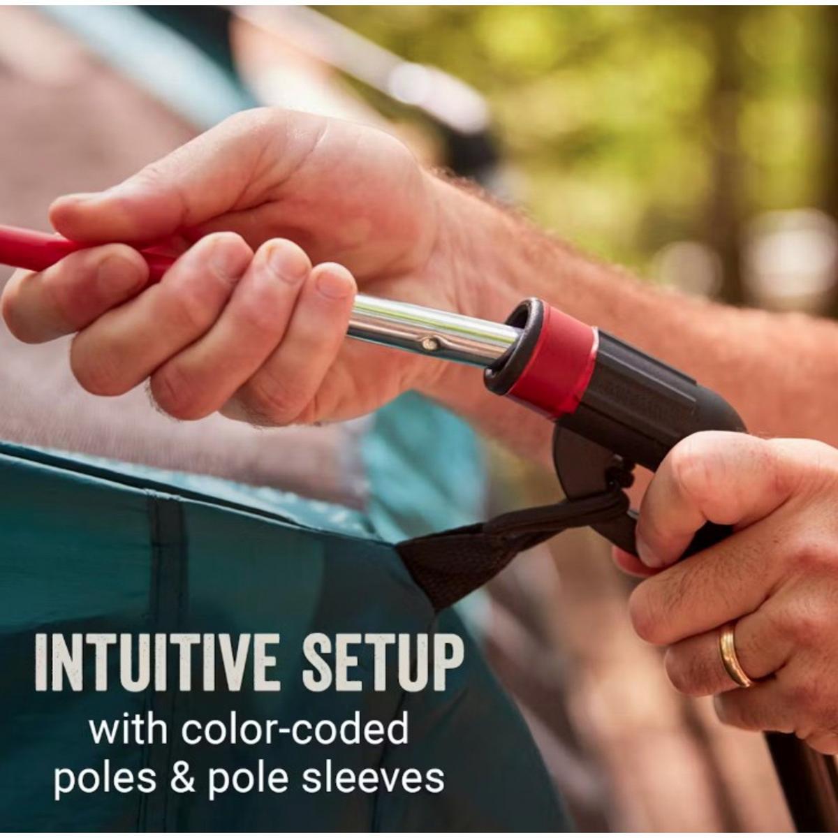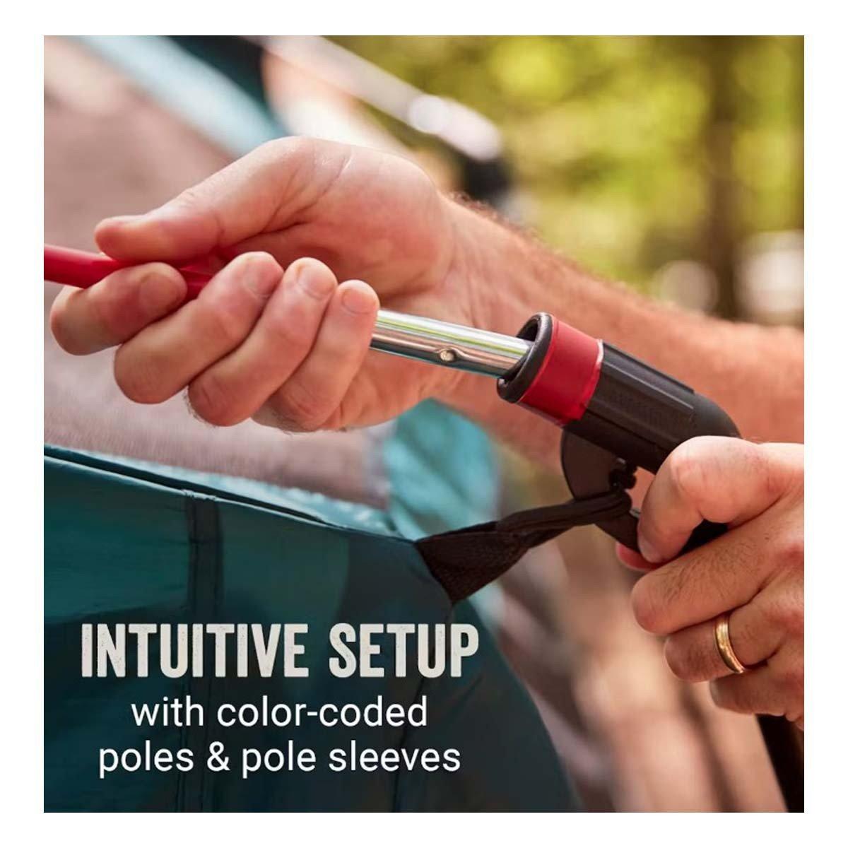 With extra space and an intuitive set up, the Coleman® Skylodge™ Camping Tent with Screen Room is the optimum home away from home. The weatherproof, multifunctional screen room provides extra living space for sleeping or storing your gear. Plus, color-coded poles and pole sleeves offer easy, intuitive setup so you spend less time pitching the tent and more time relaxing around the campfire. Rain in the forecast? This tent features the WeatherTec™ system, with welded corners and inverted seams that help keep you and your gear dry. The wide door makes it easier to move airbeds, sleeping bags, and other gear in and out of the tent. The spacious size and added screen room make it a great choice for car camping with the whole crew.