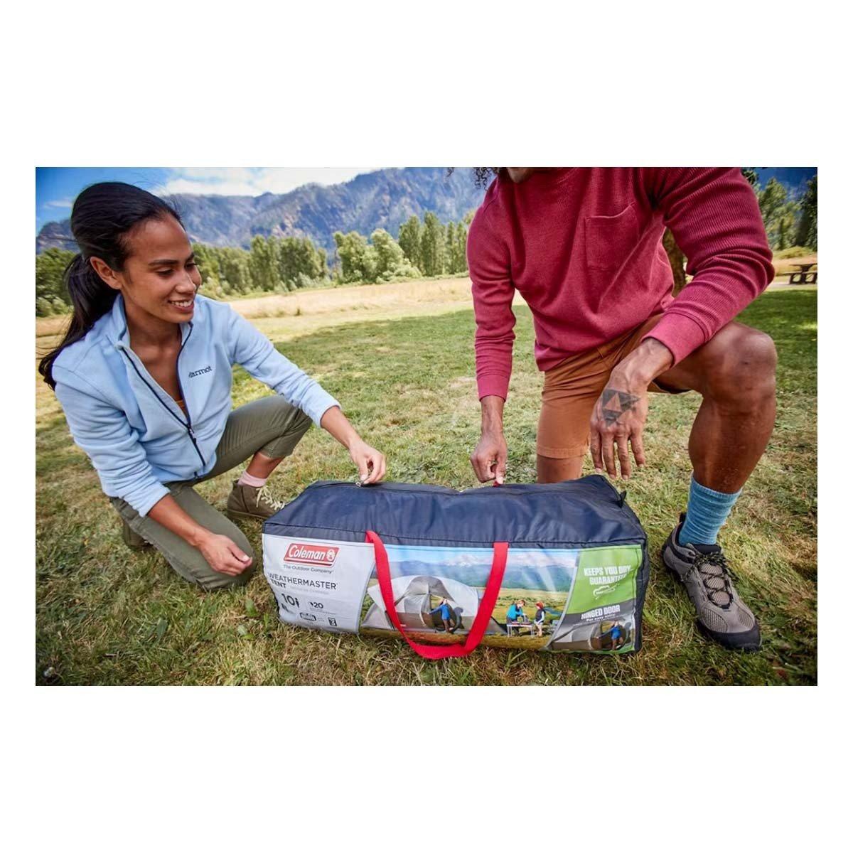 Set up home base for a big camping group with the Coleman® 10-Person Weathermaster® Dome Camping Tent. Its hinged door easily swings open and shut to keep the extra foot traffic moving.