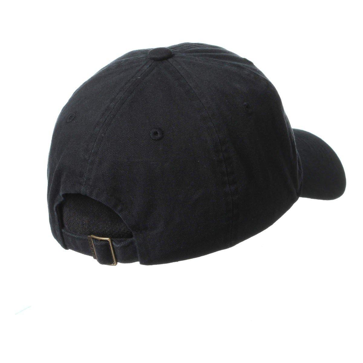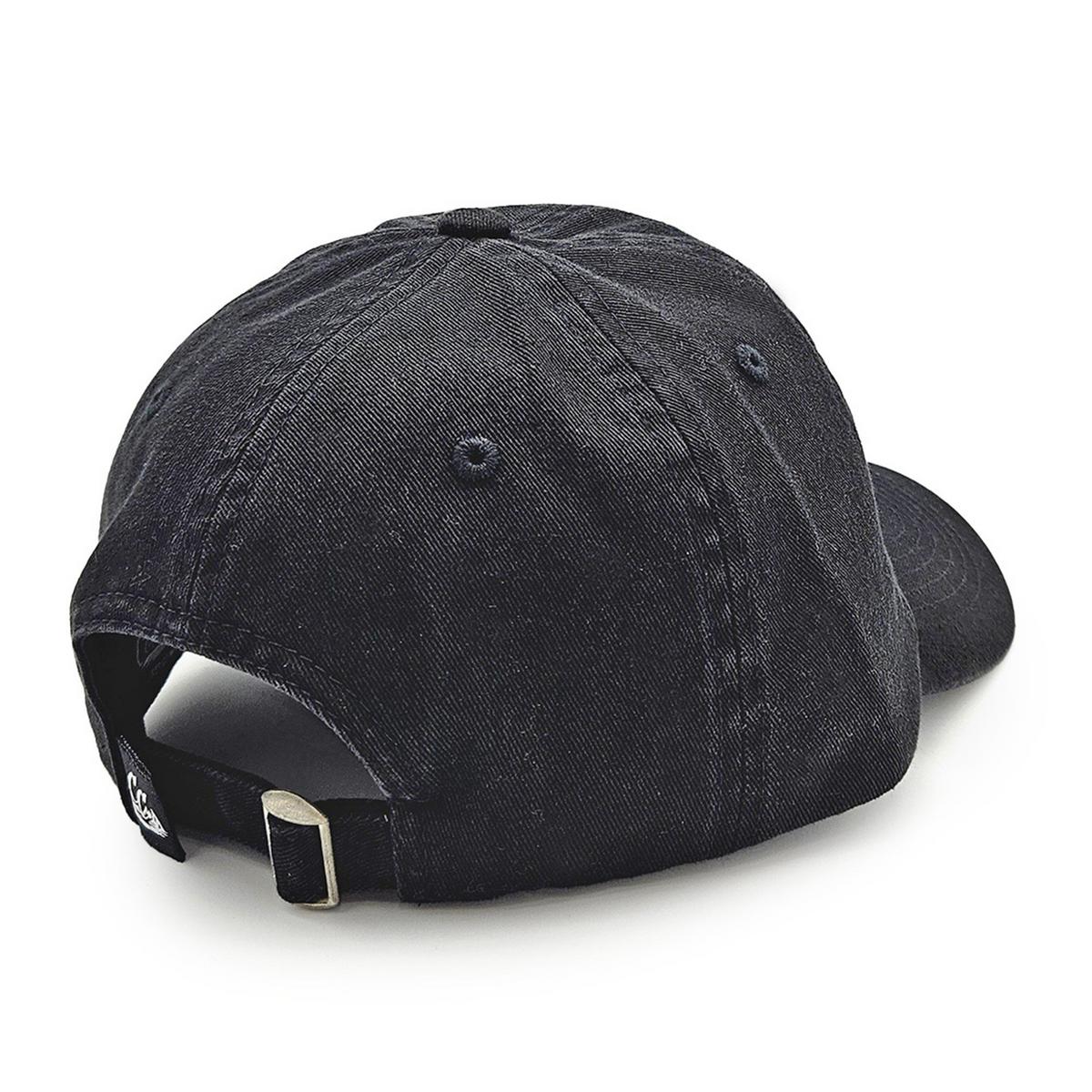 Unstructured "dad" hat. Curve bill. Adjustable buckle backstrap.