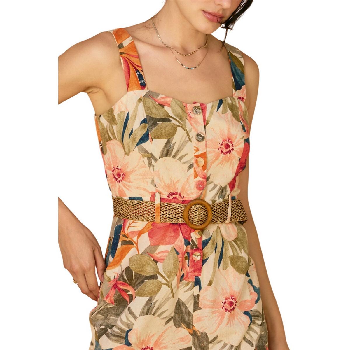 Floral print rayon linen blend romper. Model is 5'8" and wearing size Small.