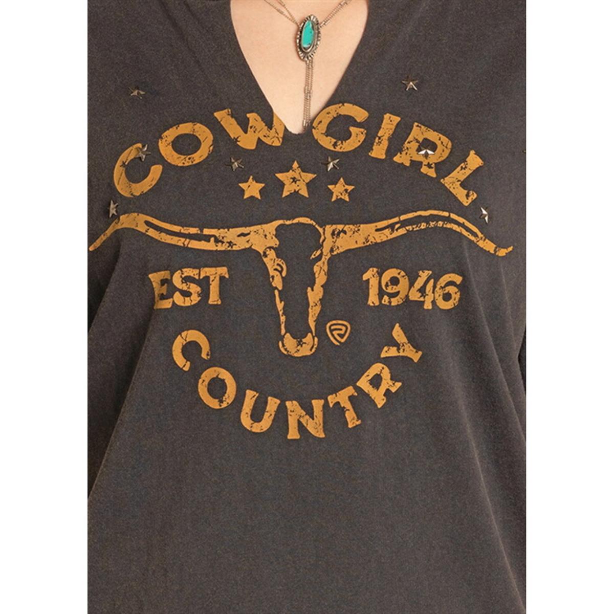 Women's Rock & Roll Denim Cowgirl Country Notch Neck T-Shirt