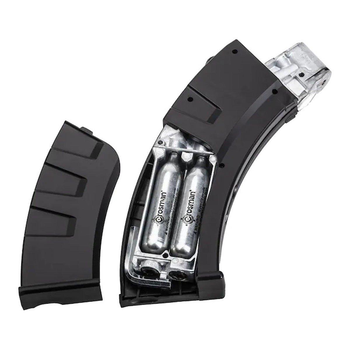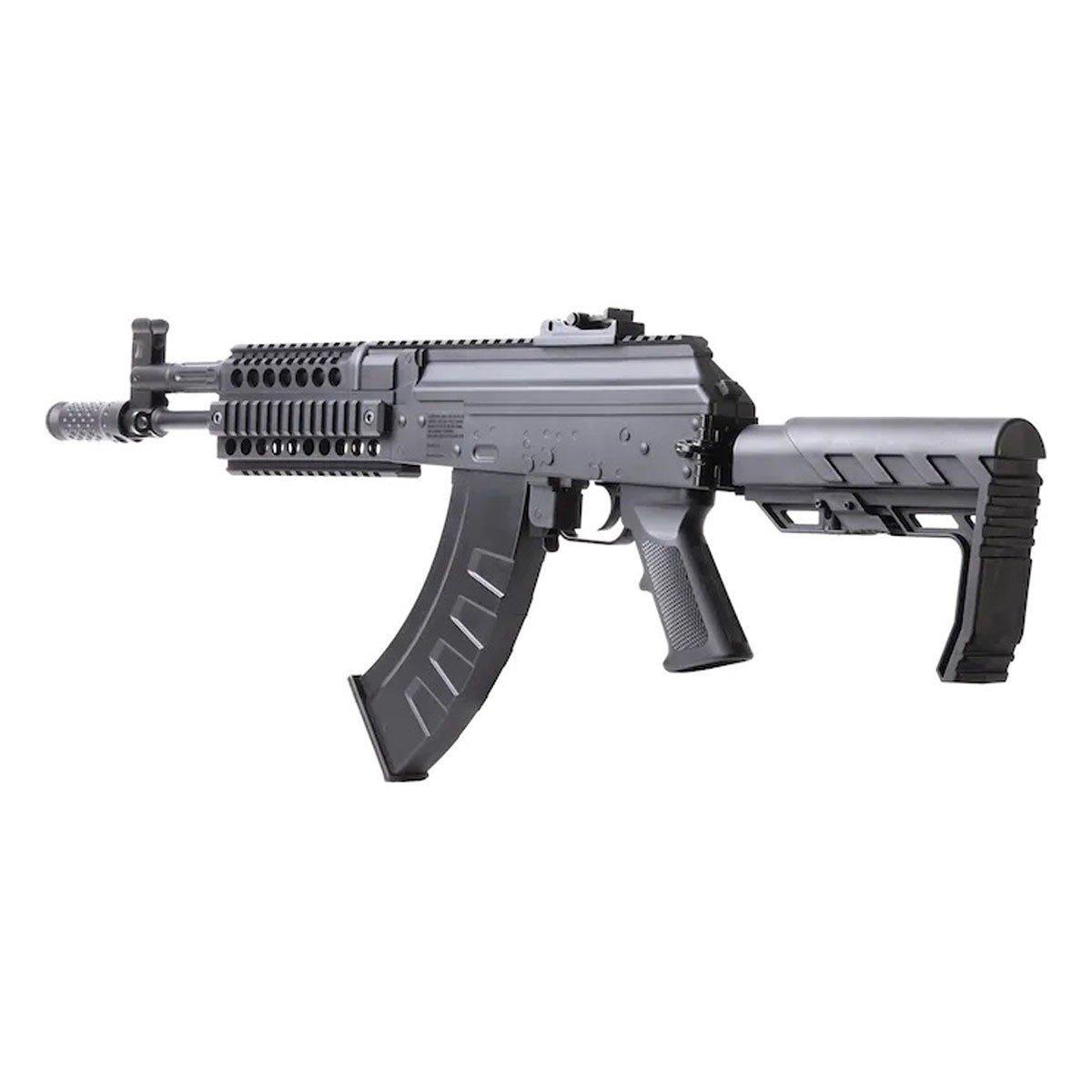 The Crosman AK1 BB air rifle maximizes backyard fun! Featuring full-auto and semi-auto options powered by dual CO2 powerlets, the Crosman AK1 flings BBs at 430 fps and 1400 rounds per minute. This modern take on an all-time classic comes with a 28-round removable magazine and a foldable/adjustable buttstock to give the shooter the ultimate in look and feel. Get ready to experience the fun that only a full auto BB gun can provide!