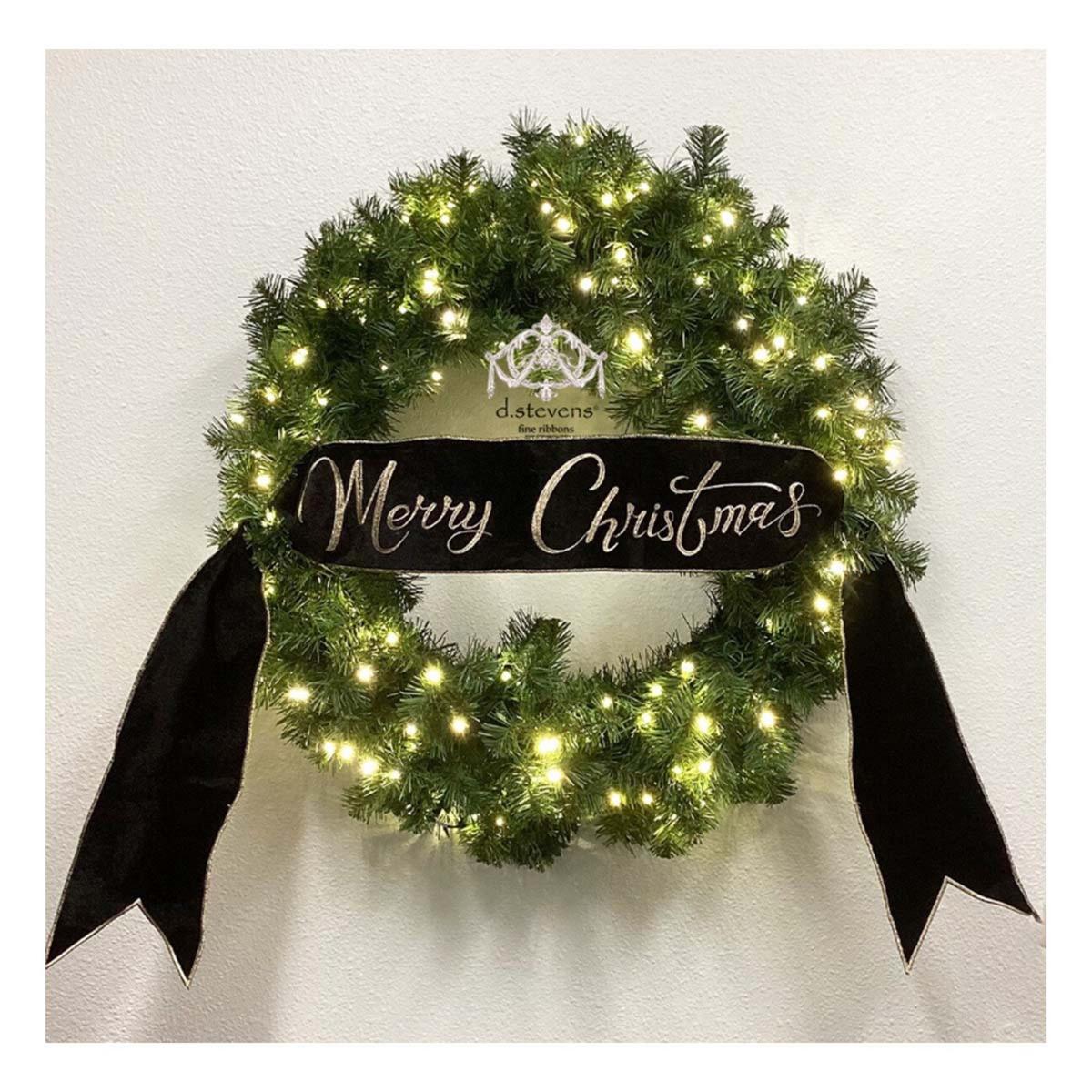 D Stevens Fine Ribbons Velvet Gold Merry Christmas Embroidered Wired Rbbon