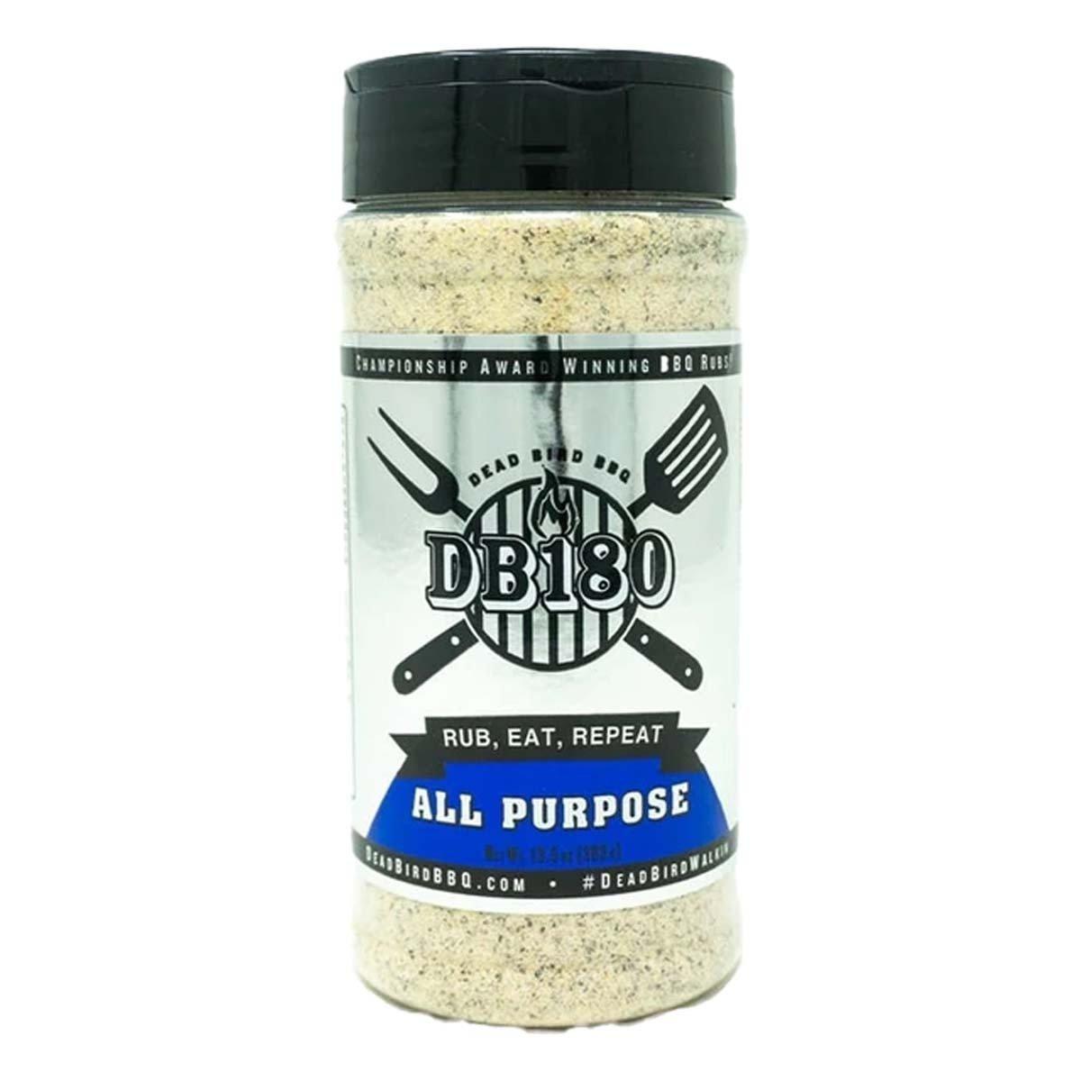 DB180 All Purpose seasoning is designed as a base layer for everything you will cook, and the flavor profile matches up perfectly with all DB180 rubs. Dead Bird BBQ suggests that you use this versatile salt, pepper, and garlic-based rub on anything you wish to season. Best yet, combine it with the other DB180 rubs specific to the meat you are cooking or as a base layer in your current recipe. DB180 (Dead Bird + 180 = perfect score in BBQ) and the DB180 line of BBQ rubs became commercially available. Dead Bird BBQ is one of the most successful new teams in the nation, and using the entire line of DB180 rubs