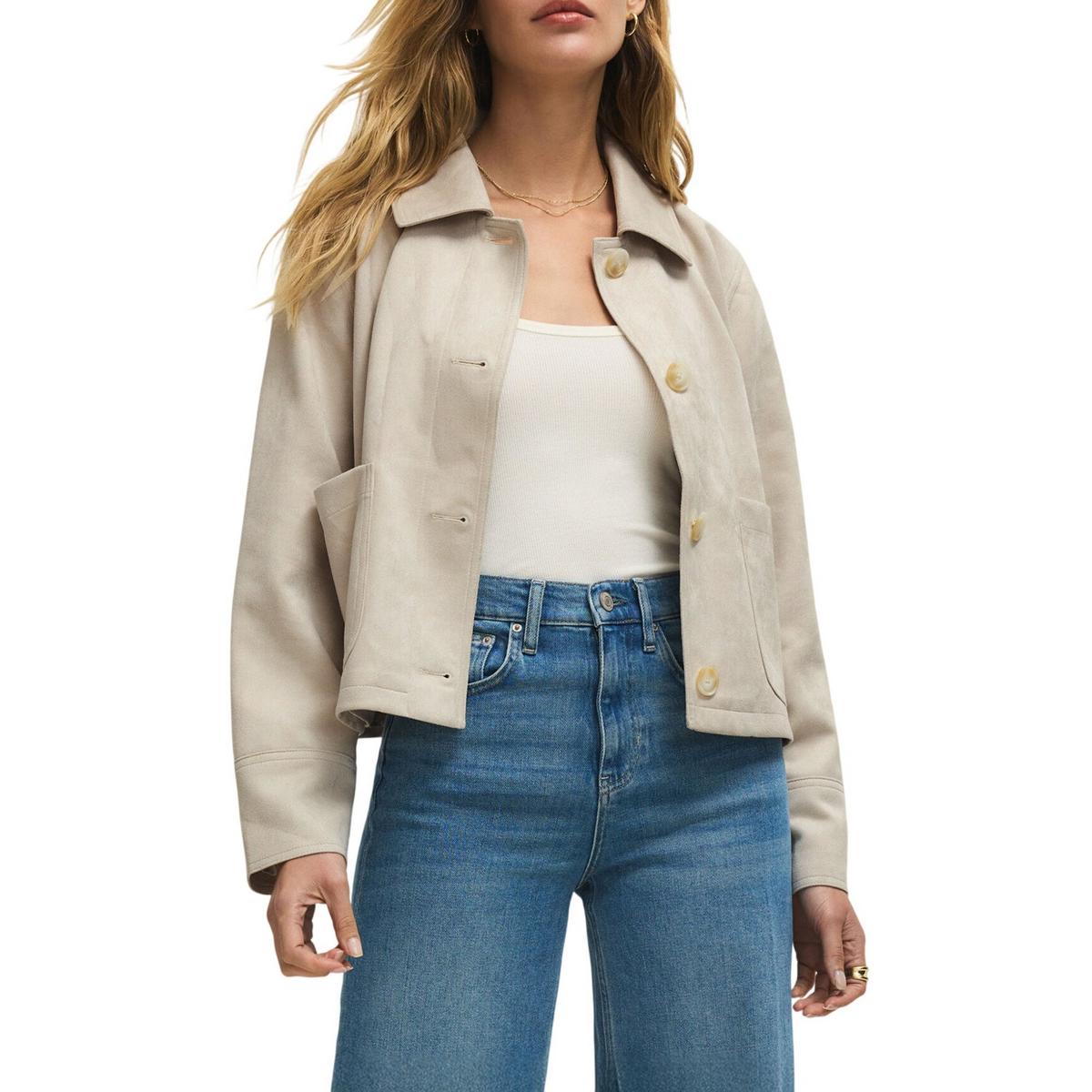 This cropped jacket is crafted from supple faux suede for a smooth, touchable finish. The boxy fit and button-front design make it a versatile layer that feels as good as it looks.