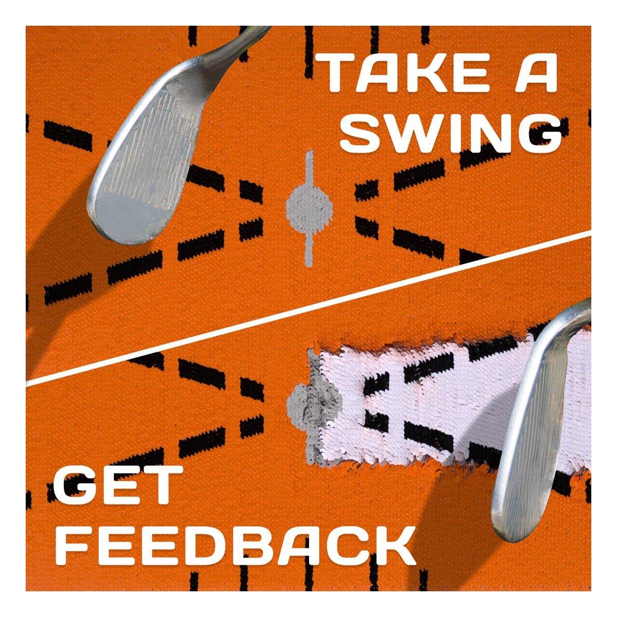 The Divot Pro uses a sequin-based surface that visually records your club’s path after each swing. This shows where and how your club contacted the ground, helping you identify common faults like toe hits, fat shots, and slices.