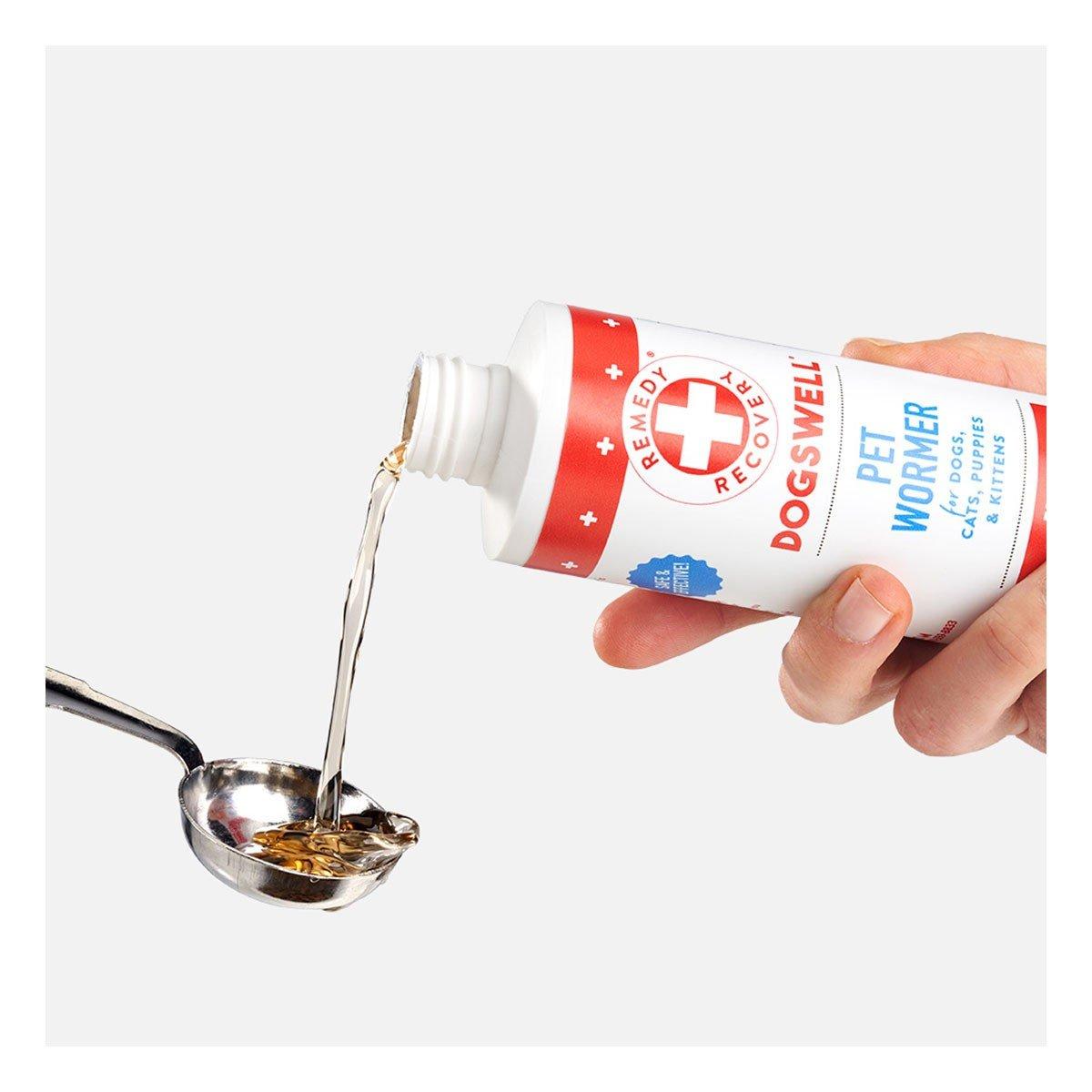 Dogswell® Remedy + Recovery® Pet Wormer is a safe and effective treatment for use in food or drinking water for the removal of large roundworms (Toxocara canis, Toxocara cati, Toxascaris leonina) in the intestine of dogs or cats.