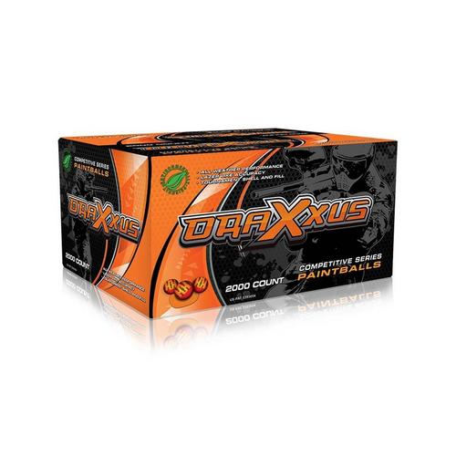 Competitive shell and fill for improved accuracy and breakability. Fits all 68 caliber paintball markers. All weather performance. 2000 paintballs per box.