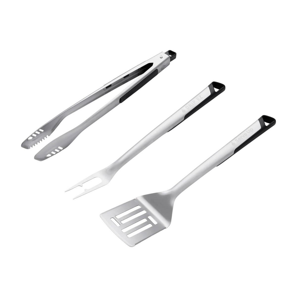 {"reviews":[],"offset":0,"limit":10,"total":0}"Full Description:\nThe Drip EZ Heavy-Duty Grill Tool Set gives you the essentials - spatula, fork, and tongs - crafted from premium stainless steel. Extra-long, rust-proof, and dishwasher safe, they’re built for comfort, control, and countless cooks.\n\nFeatures:\n\u003cul>\n\u003cli>The Drip EZ Heavy-Duty Grill Tool Set gives you the essentials - spatula, fork, and tongs - crafted from premium stainless steel. Extra-long, rust-proof, and dishwasher safe, they’re built for comfort, control, and countless cooks.\u003c/li>\n\u003c/ul>\n\nSpecifications:\n\u003cul>\n\u003cli>Includes spatula, fork, and tongs\u003c/li>\n\u003cli>Premium stainless steel construction (rust-proof, dishwasher safe)\u003c/li>\n\u003cli>Extra-long ergonomic handles for safe, comfortable grilling\u003c/li>\n\u003c/ul>\n"